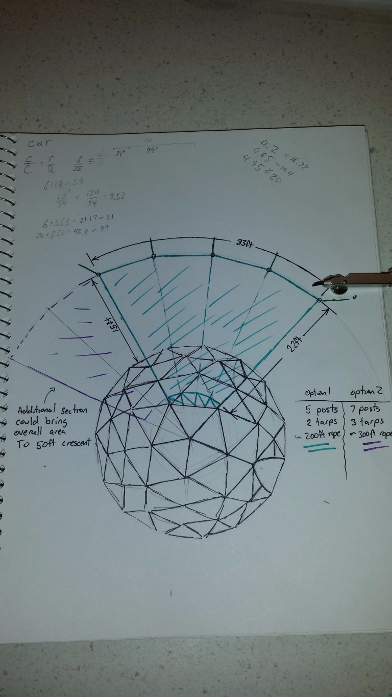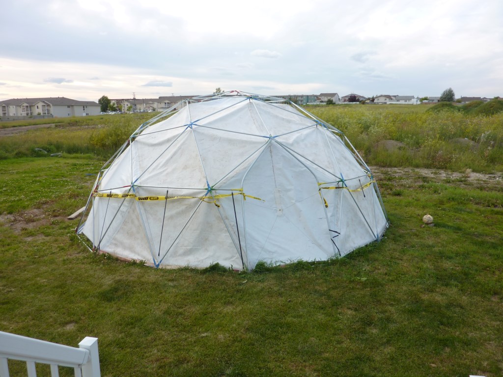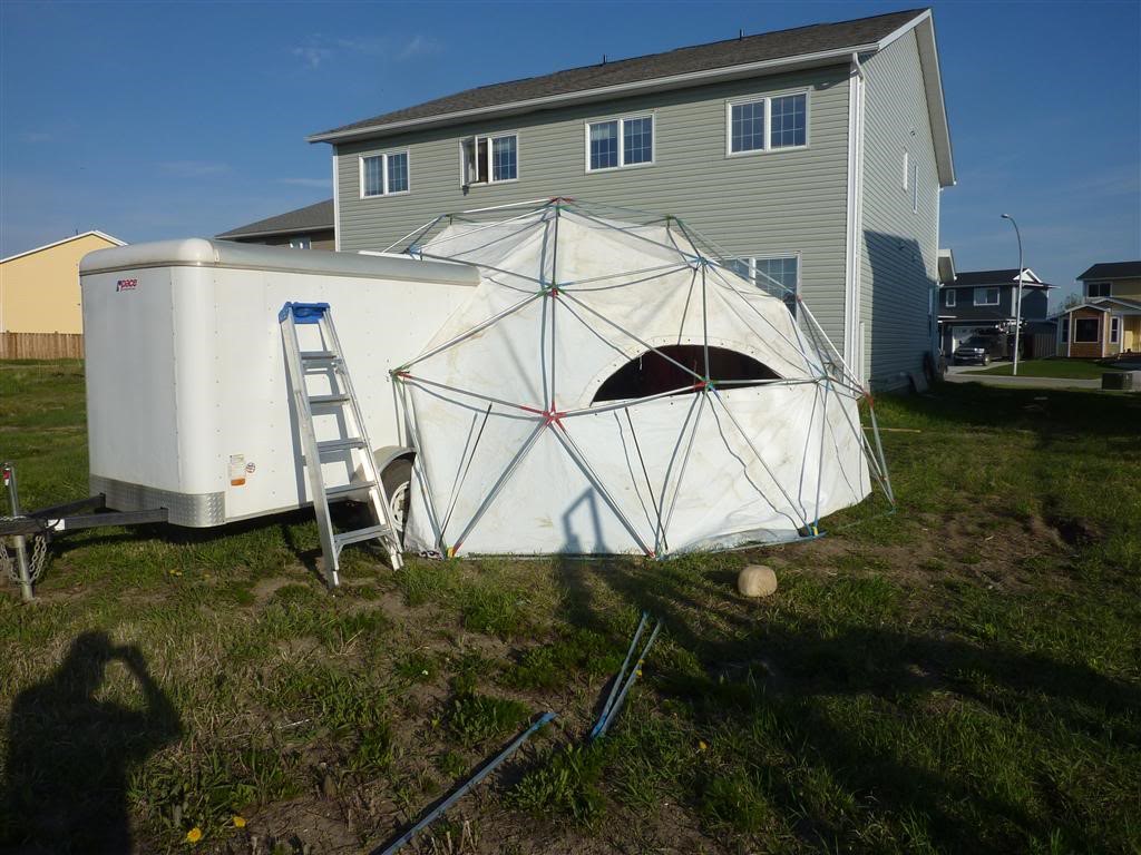 What I found a little more difficult to come by were detailed accounts of how to make a cover, how to get a dome cover of this size on and off by myself, in the wind. How to make a door, and people's experiences with actually setting up and tearing down something like this alone. I'll try to share my experiences in as much detail as I can to help future dome builders decide on their own method.