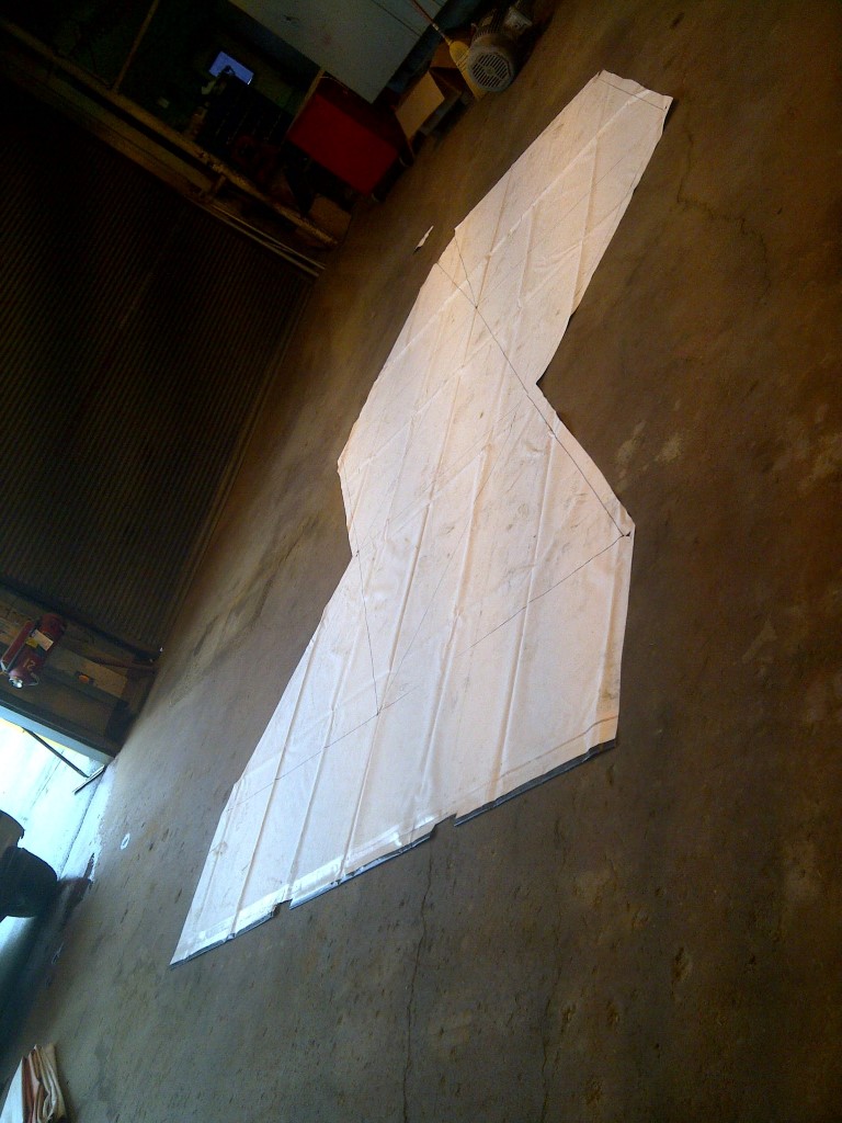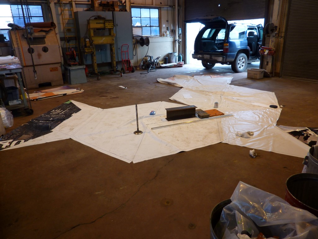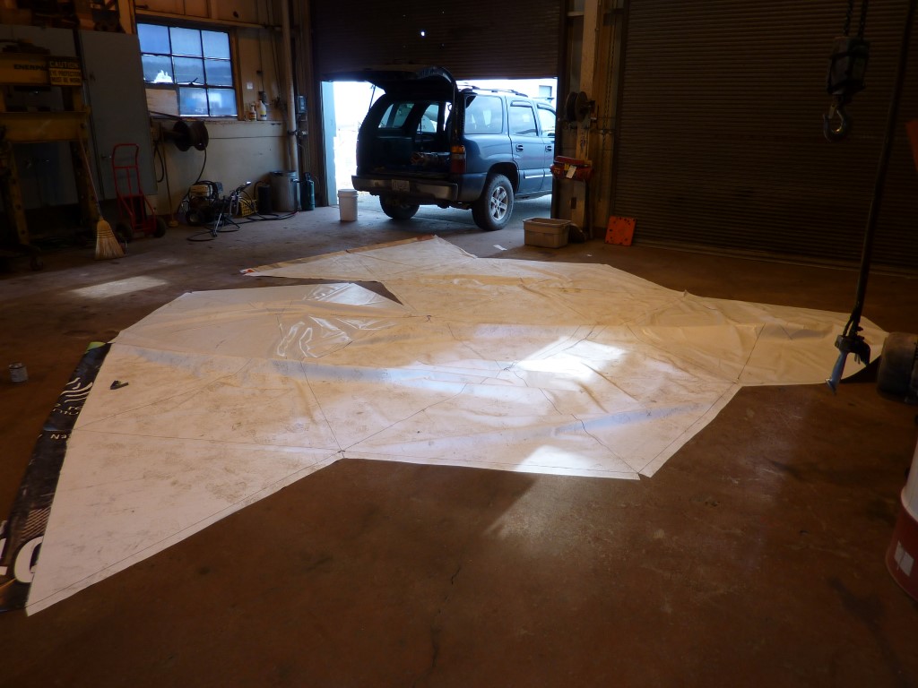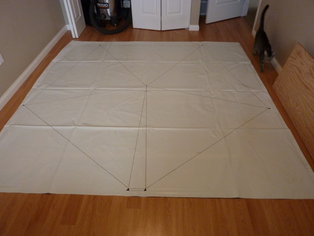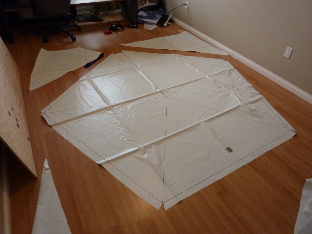 At each vertex, I laminated a 6" circle of fabric for reinforcement, as the canopy would hang from the vertices.