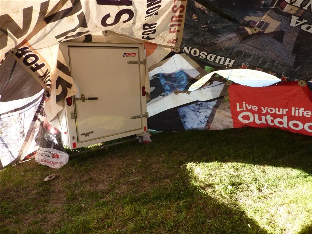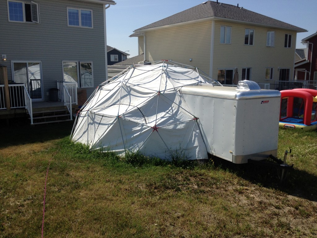 The trailer provides some structural support during setup which is nice. It's also currently equipped with solar panels/batteries that run an inverter, phone chargers, interior and exterior lighting, a swamp cooler, etc.