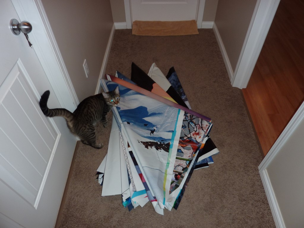 As discussed above, you have many options; I chose recycled billboard fabric because it was cheap, mainly, but also I wanted to glue the seams together rather than sewing, and this material can be cemented with solvent cement to form very strong, waterproof seams.