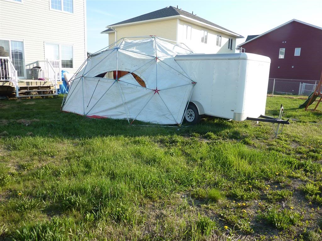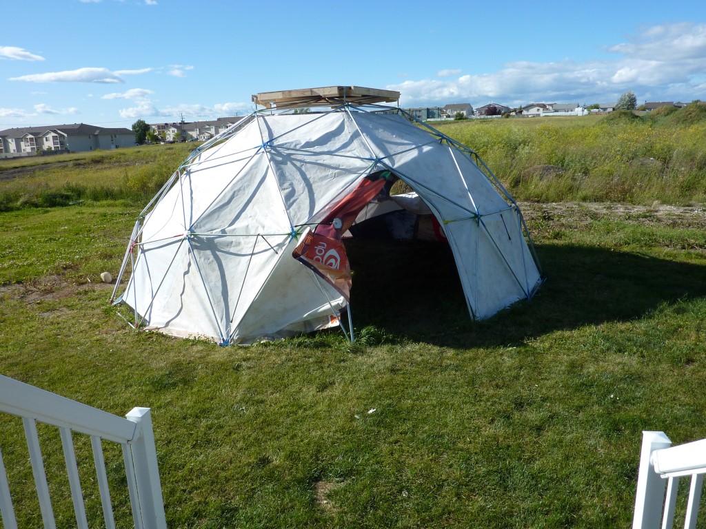 Shown above is my dome with the nearly completed canopy. I will cover how I made it in more detail below; the primary point here is to start thinking about your canopy now. It's a common story to get excited and build the skeleton and then realize the canopy is a whole different animal.