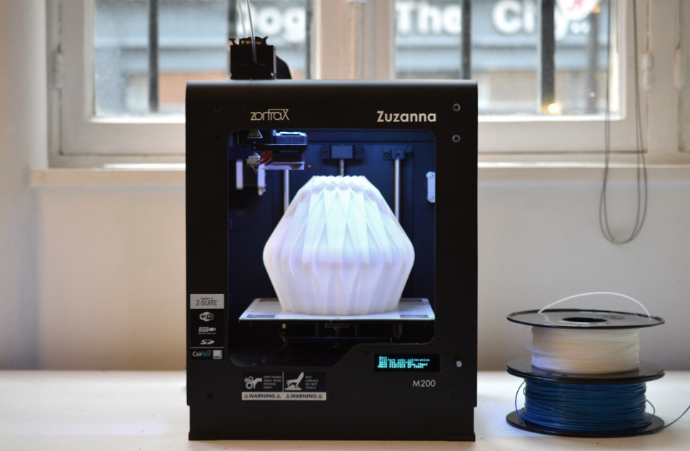 Connect the memory card to the 3D printer and begin printing the design. As shown in the image, you will find a 3D-printed PLA plastic case for a tabletop night lamp.