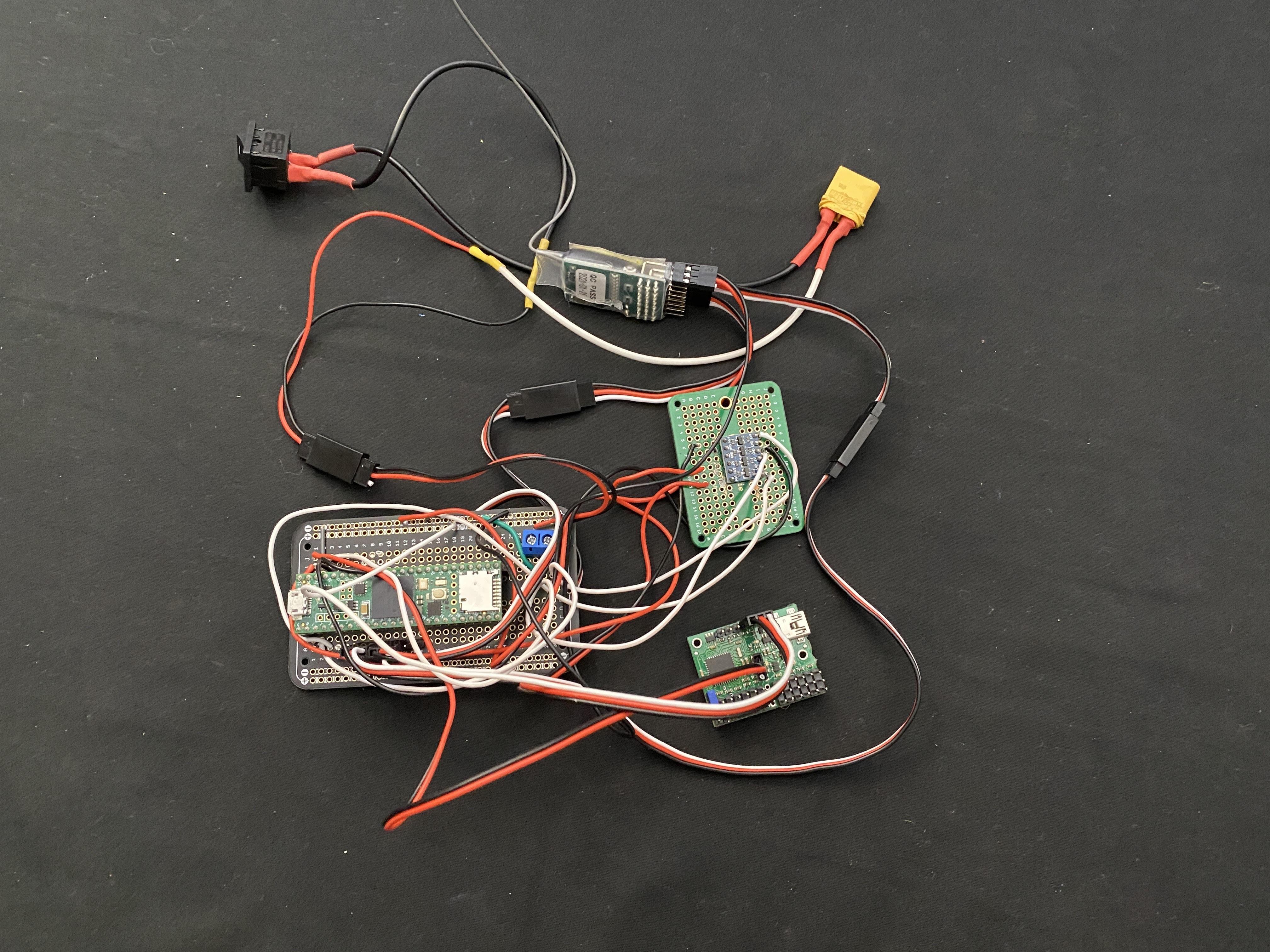 - I found it best to use servo extension cables to connect a bunch of the electronics. Allowing for plug-and-play action makes things easily removable which is important since things may not always work as expected.