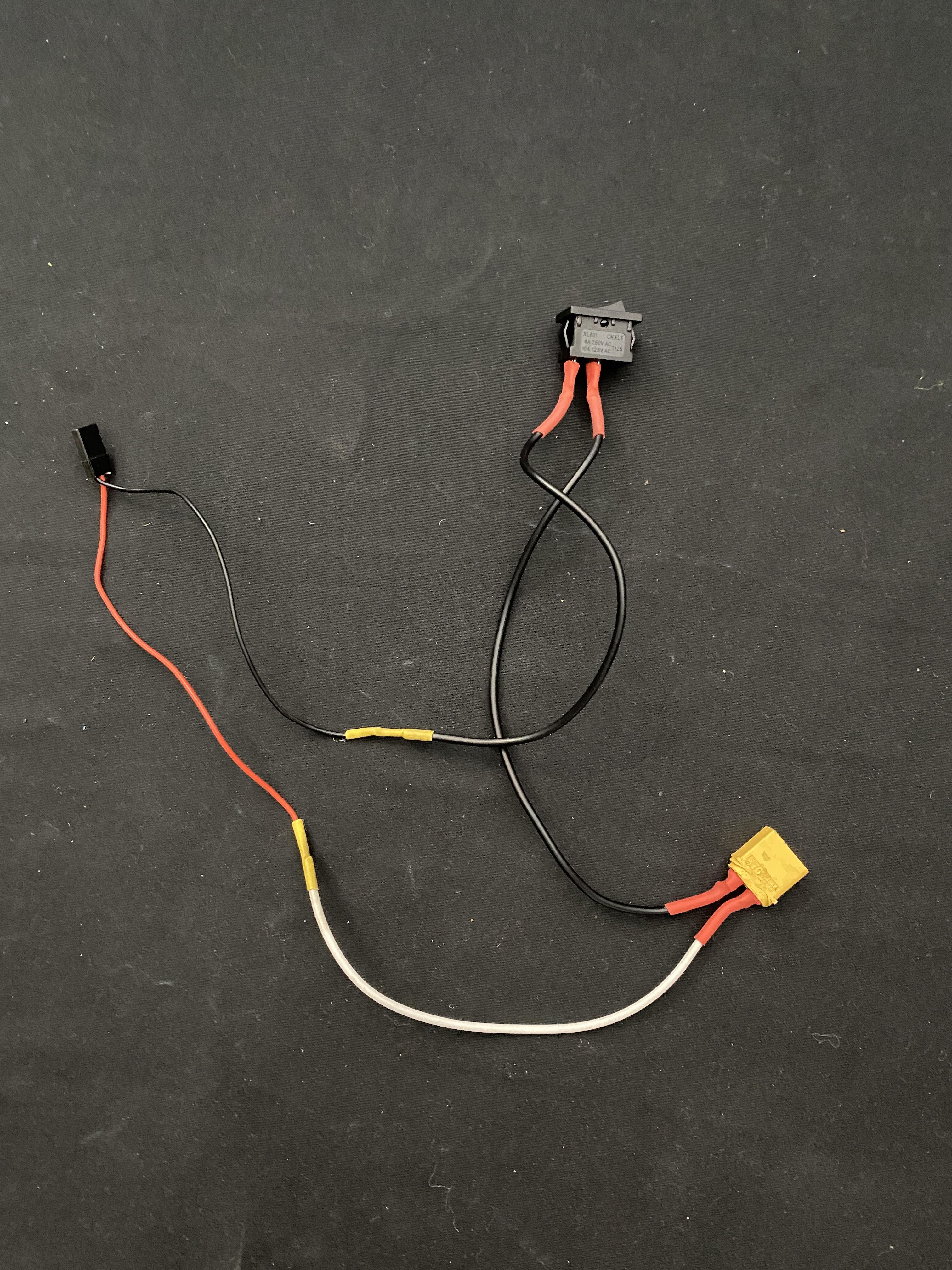 - Image #2 shows the switch wiring used. The switch turns the robot on and off by completing the circuit on one lead of the battery. Use the XT60H female connector to connect to the switch. This way, the 2S lipo battery can be plugged and unplugged.