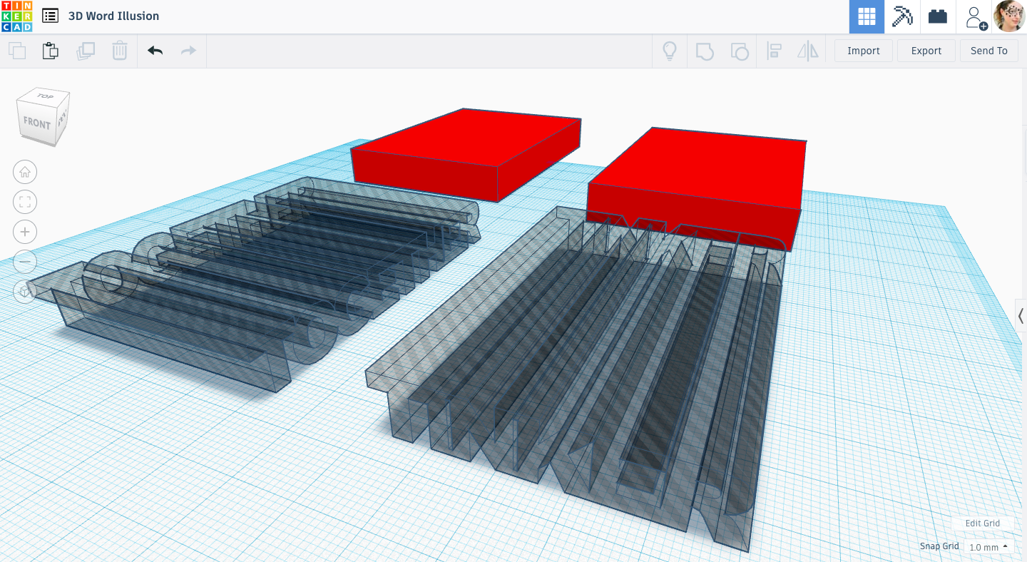 This fun Mom Dad illusion I saw in the Tinkercad Gallery the other day reminded me of the word illusion I wanted to try out where when you look at the 3D printed block it says one word along one side and a different word along the other side. This is the same concept as fungus amungus's Love Hate Instructable, I just wanted to recreate it using Tinkercad since I've never used Rhino. It's really easy and I also have some advice on how to make letters stand out when they seem to blend/get smooshed together.
