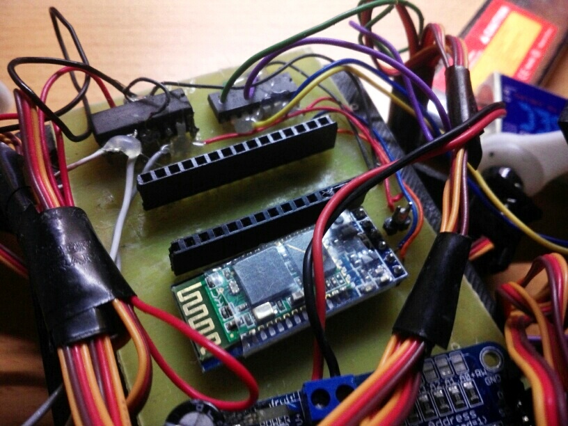 The Spiderbot is an imitation of the "Transformers". It is a RC quadruped robot and has two modes of operation: spider and vehicle, just like the robots in "Transformers". It is Arduino-based and controlled by Android phone using Bluetooth. It does not have any kinematic calculation inside. The robot cannot be played on rough ground as it needs to slip slightly. You should check out the Youtube video demonstration first!