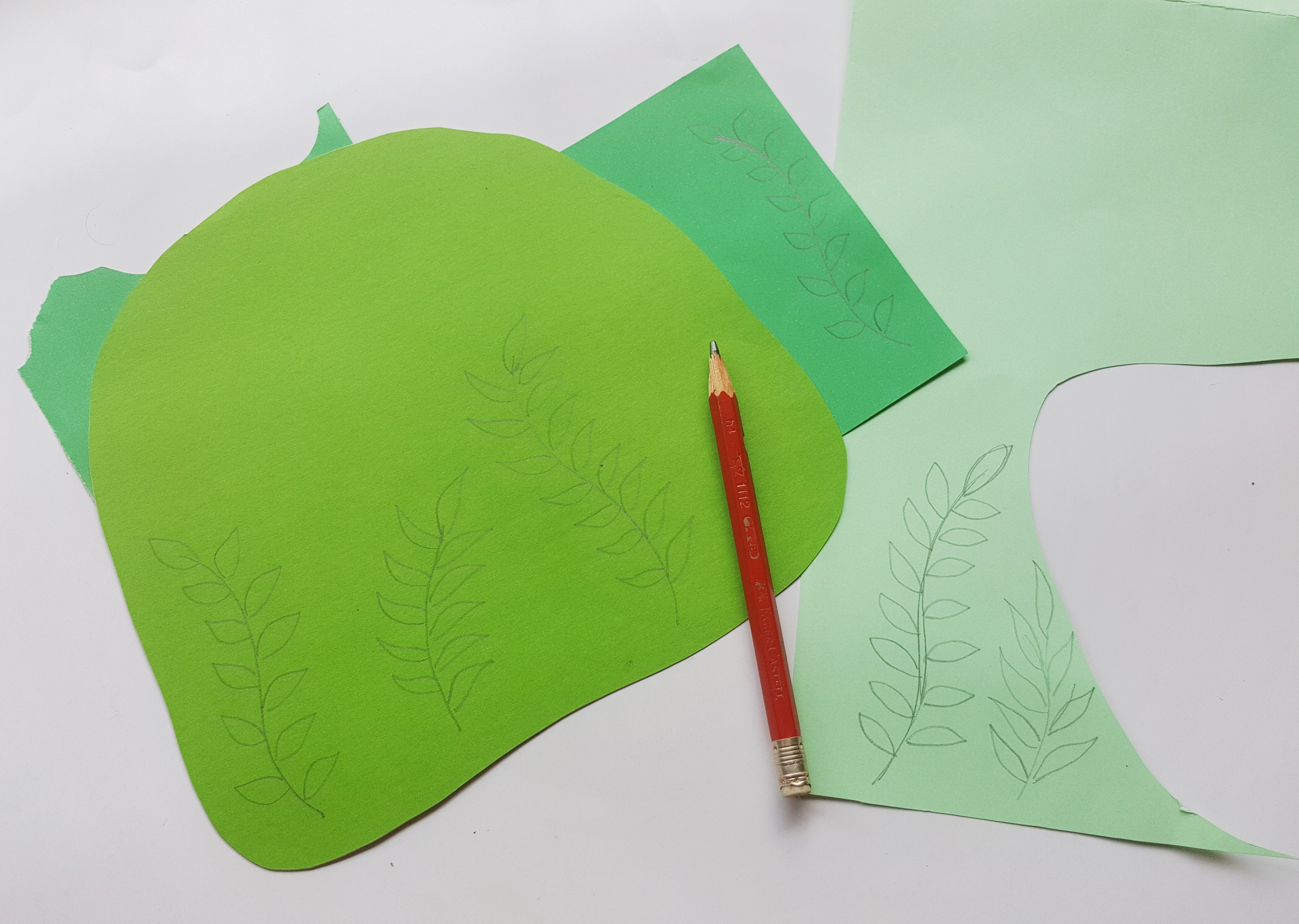 Grab the paper cutouts of each layer and draw small vines and plant patterns on them.