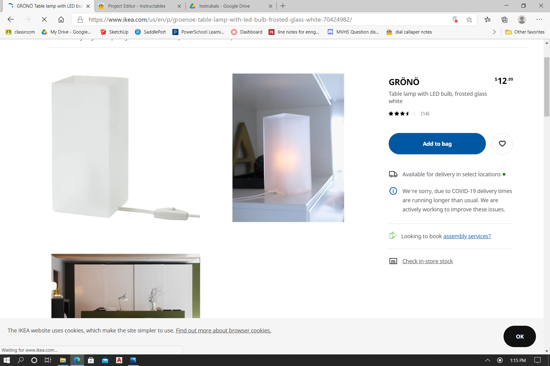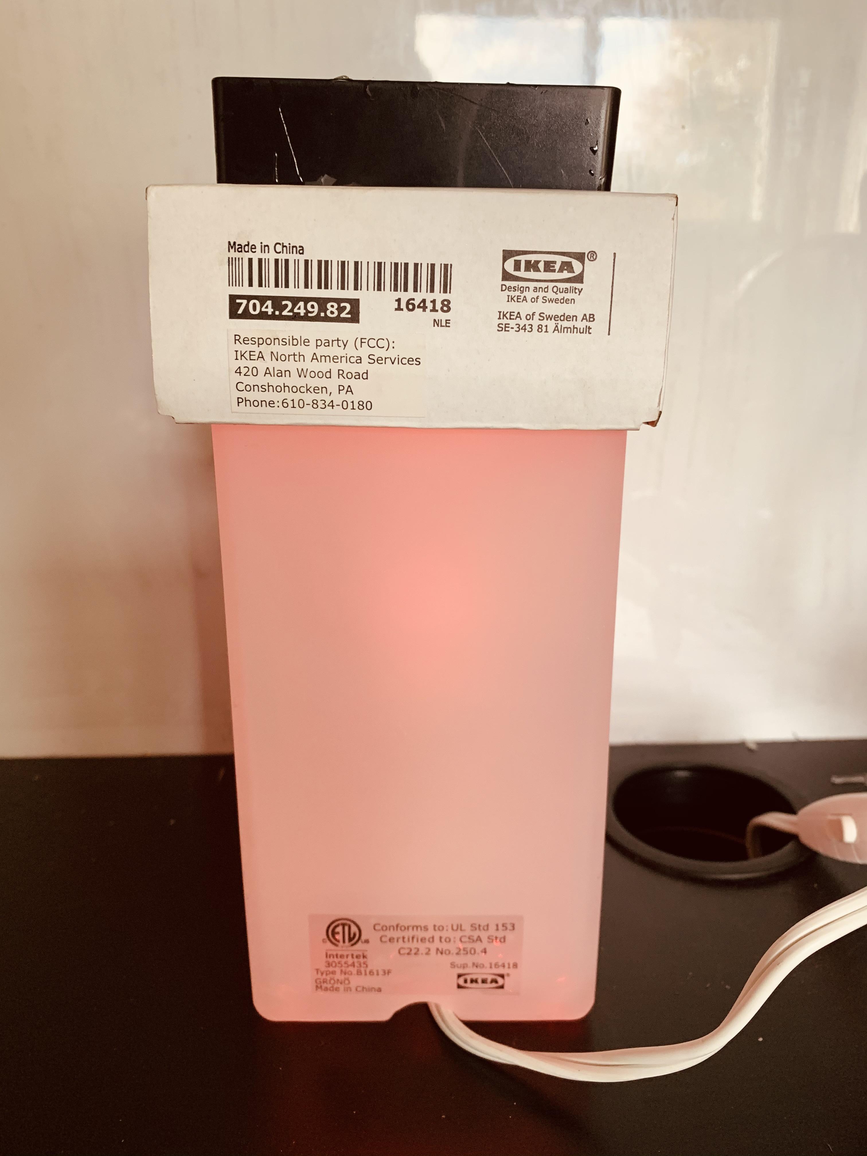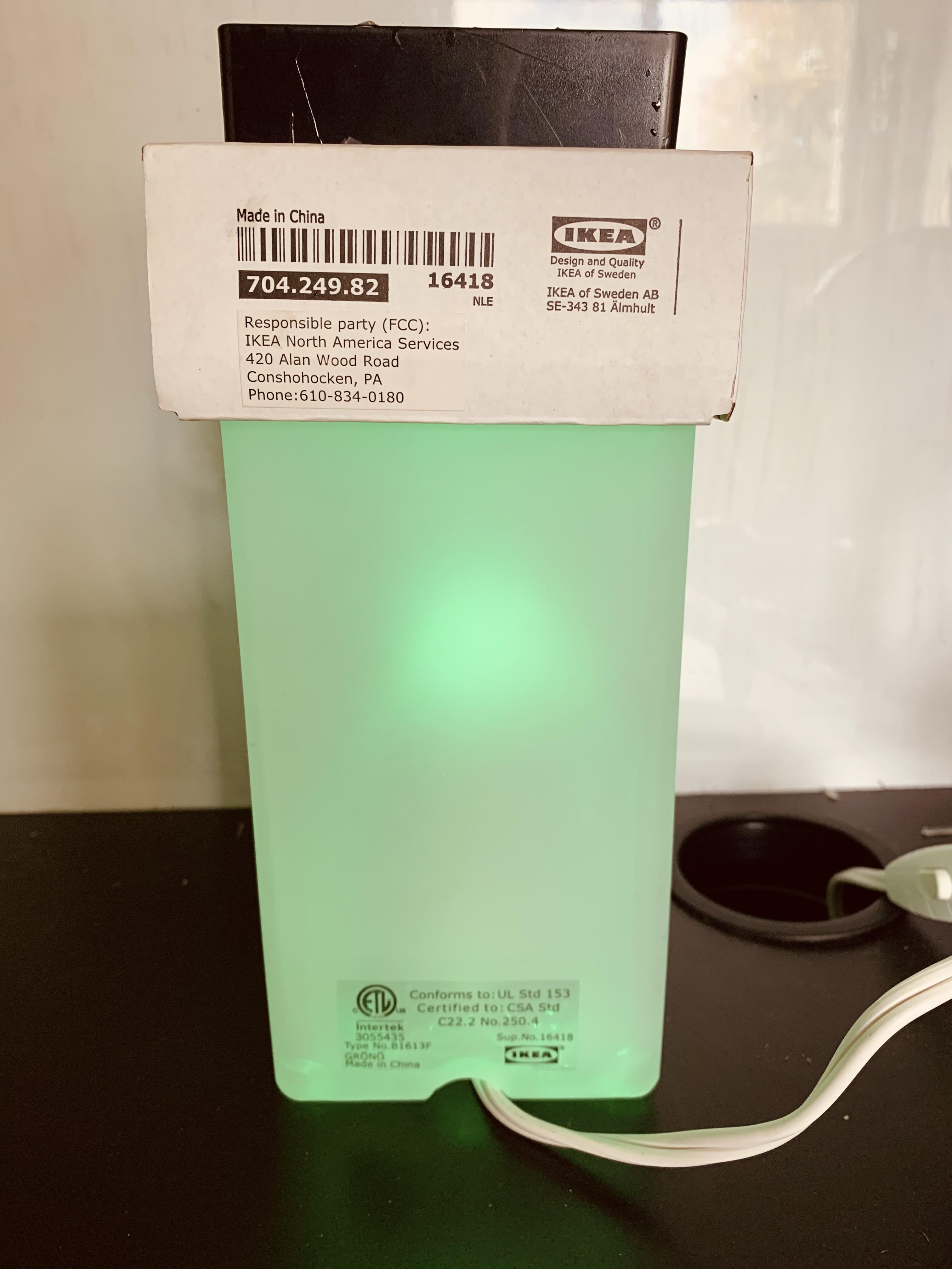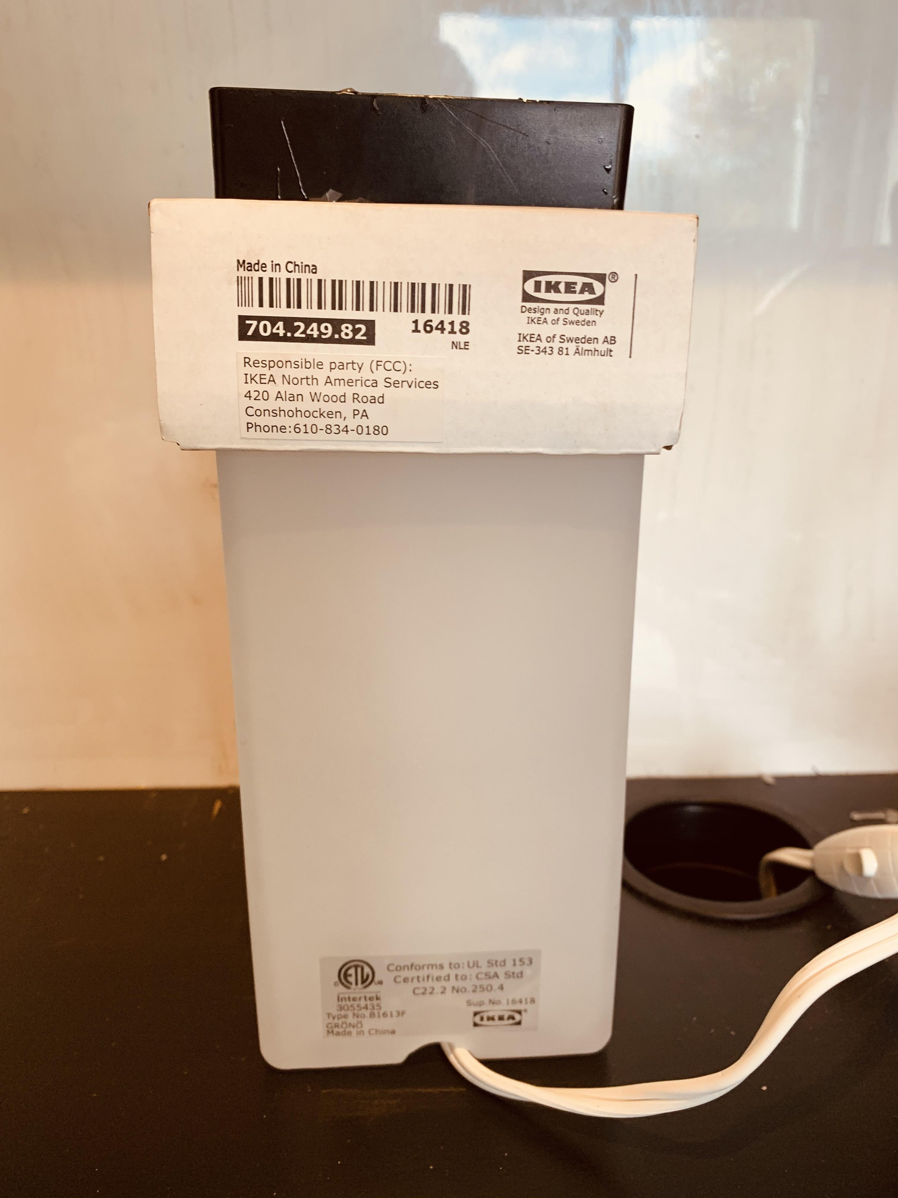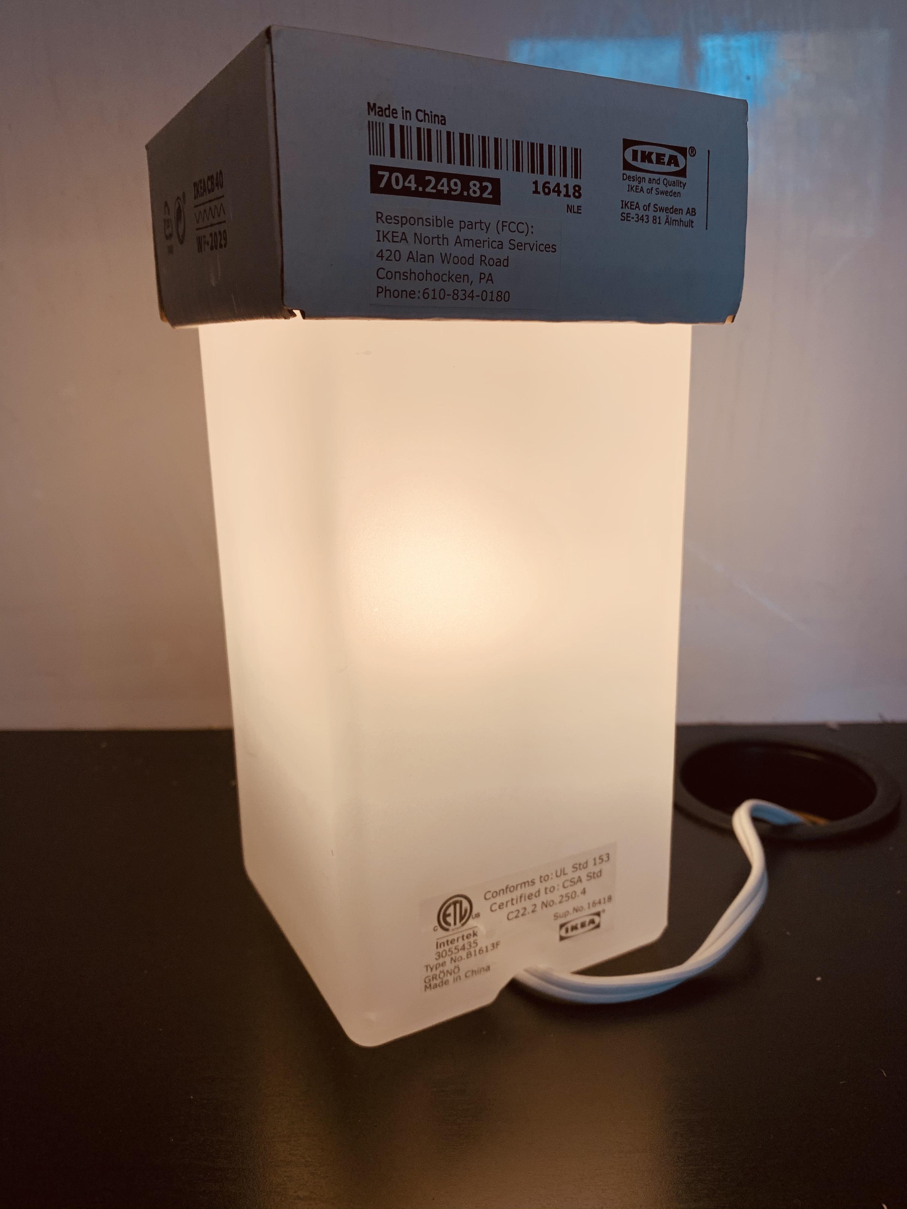 - GRÖNÖ Table lamp from Ikea and the box it came with