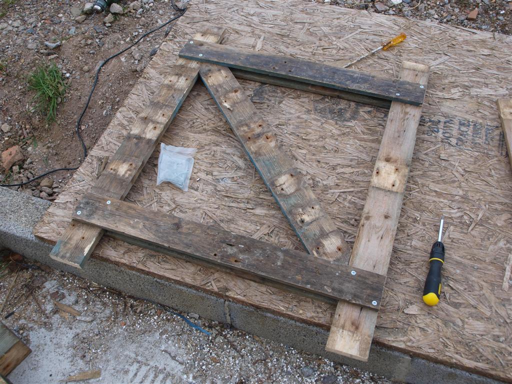 My Most recent make was a gate made from parts of a pallet. The crucial thing here is to find the right pallet for the job. I had a couple lying around so ended up using one that appeared fairly lightweight with small narrow slats and fairly minimal fixings (believe me the heavy duty ringshank fixings are a nightmare to remove). The height of the gate was based on the length of the main slat length of the pallet to reduce cutting.