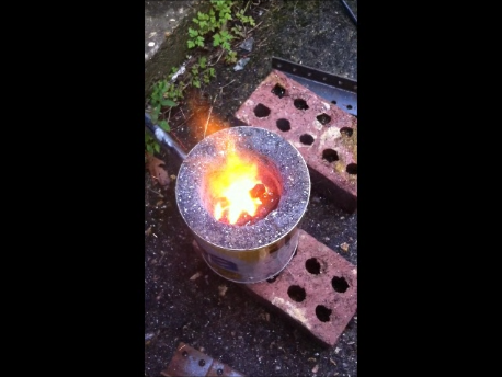 here is a video of the test I did, I made up the mix and rammed it in to a large tin (originally for baby milk, in the US it's about the same size as a coffee tin) so I basically made a mini furnace. Using my girlfriends hair dryer for blowing air in the inlet.