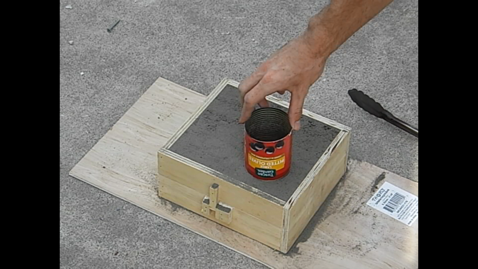 2.) Place a steel can on top of the foam riser poking out of the casting box or make a small funnel out of green sand to direct the flow of metal.