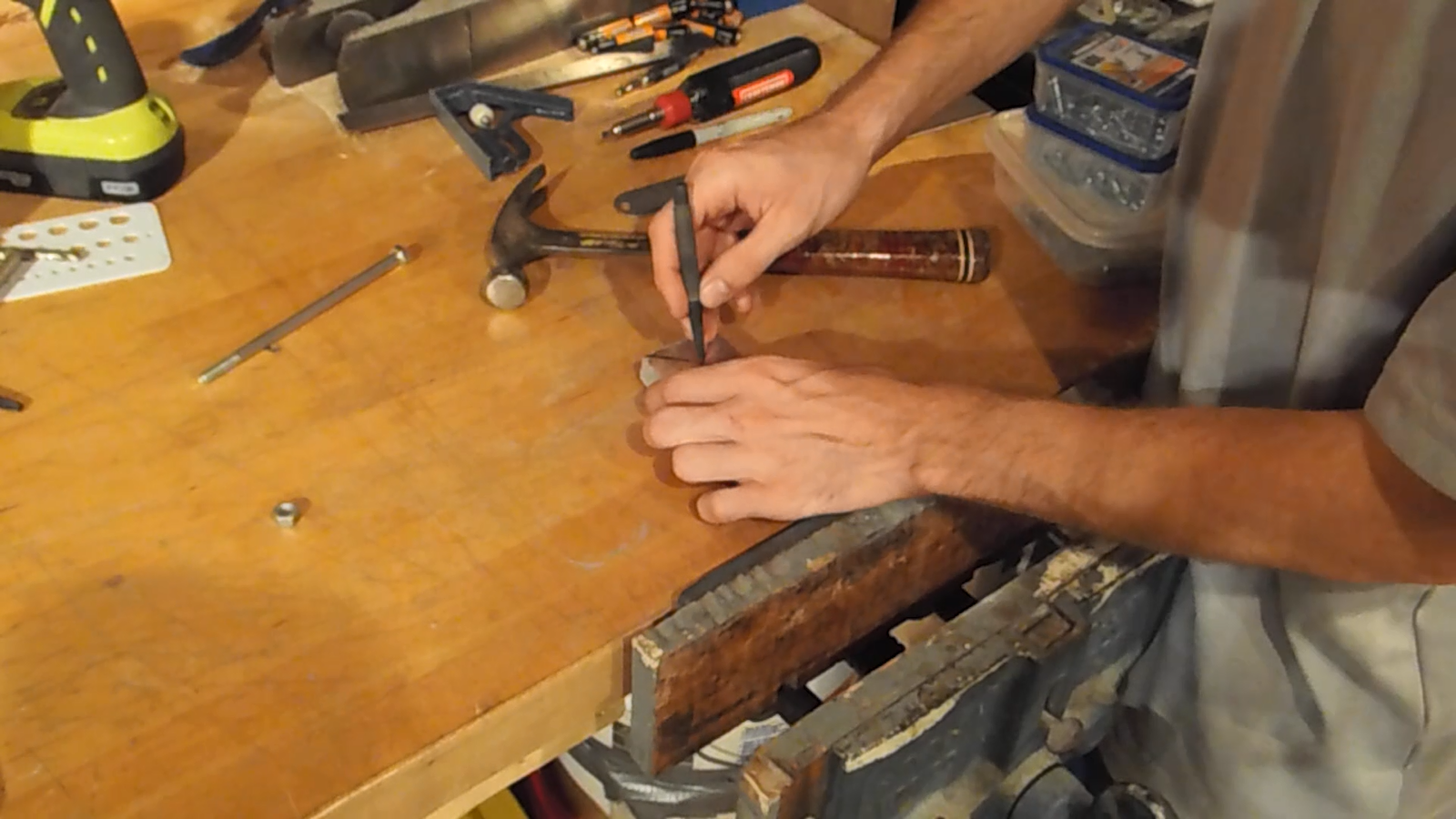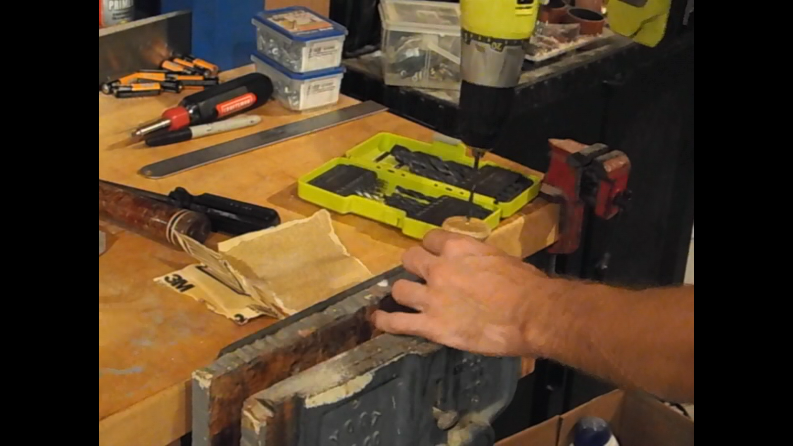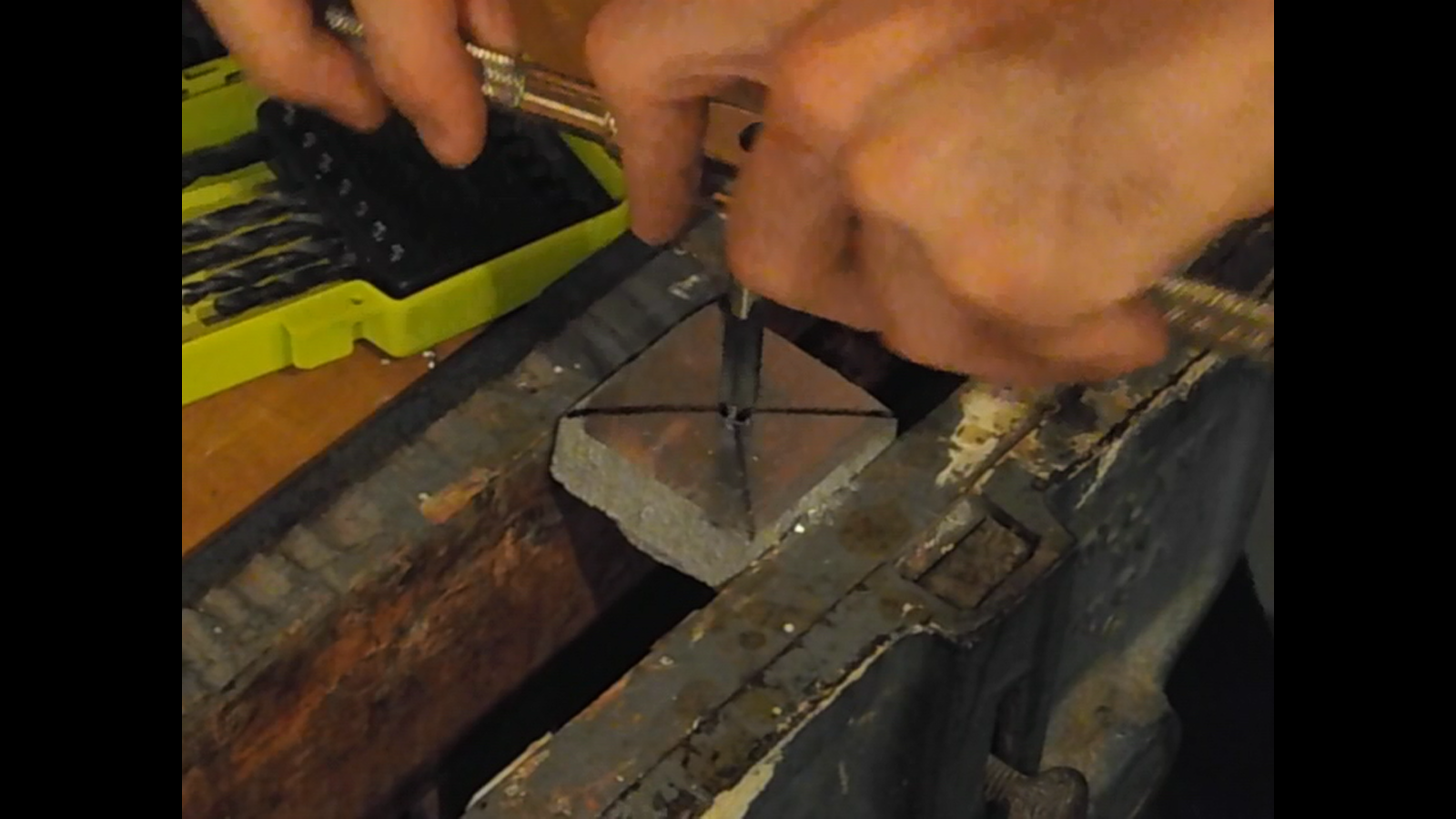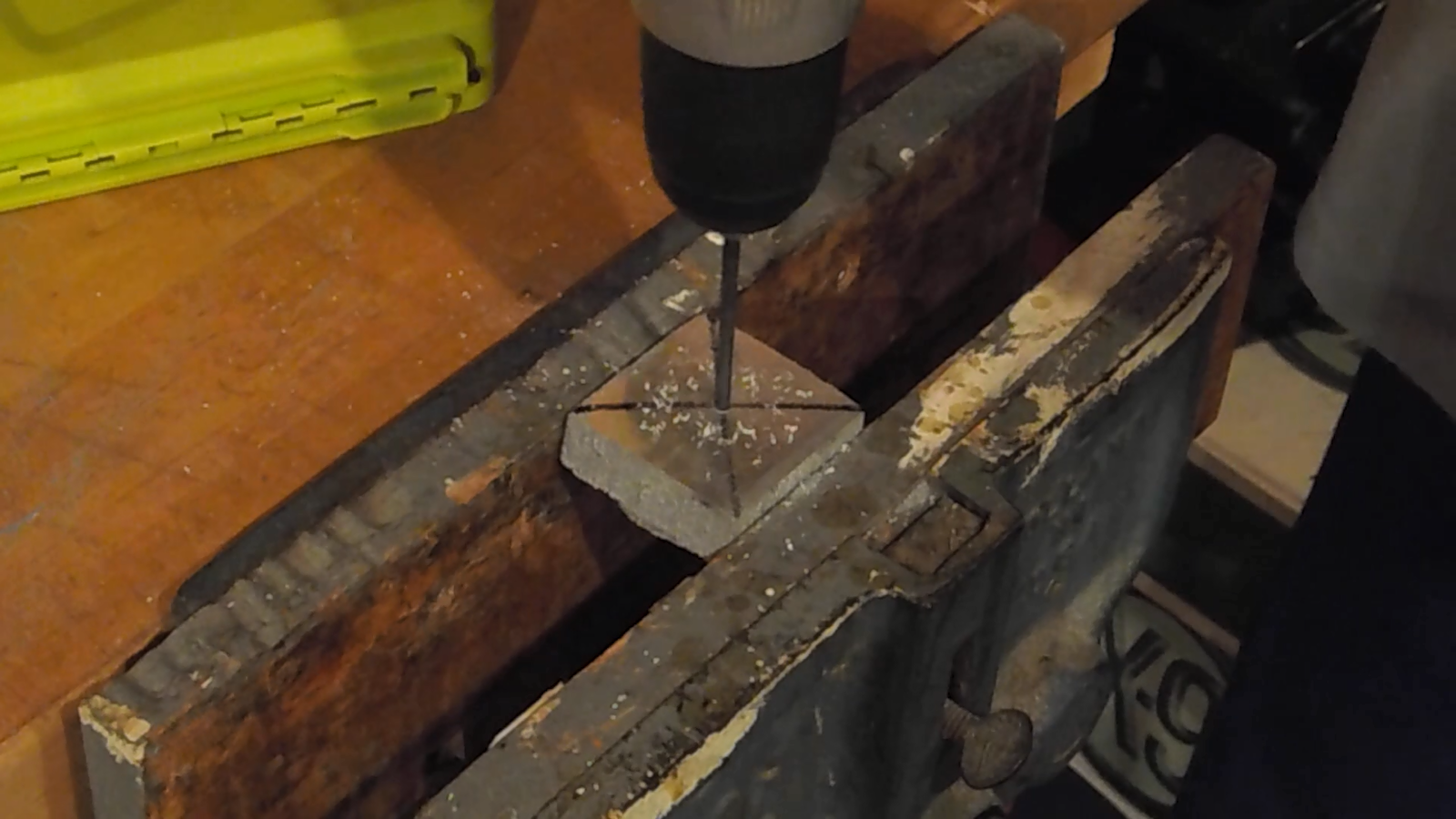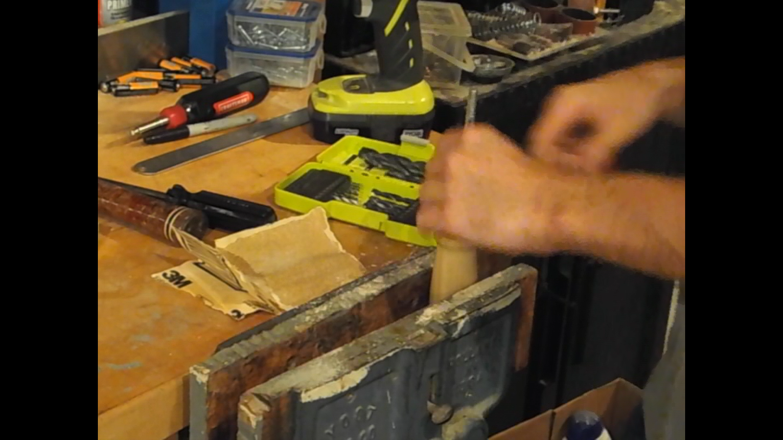 4.) Drill a hole into the handle the right size to receive the shaft of the lag bolt