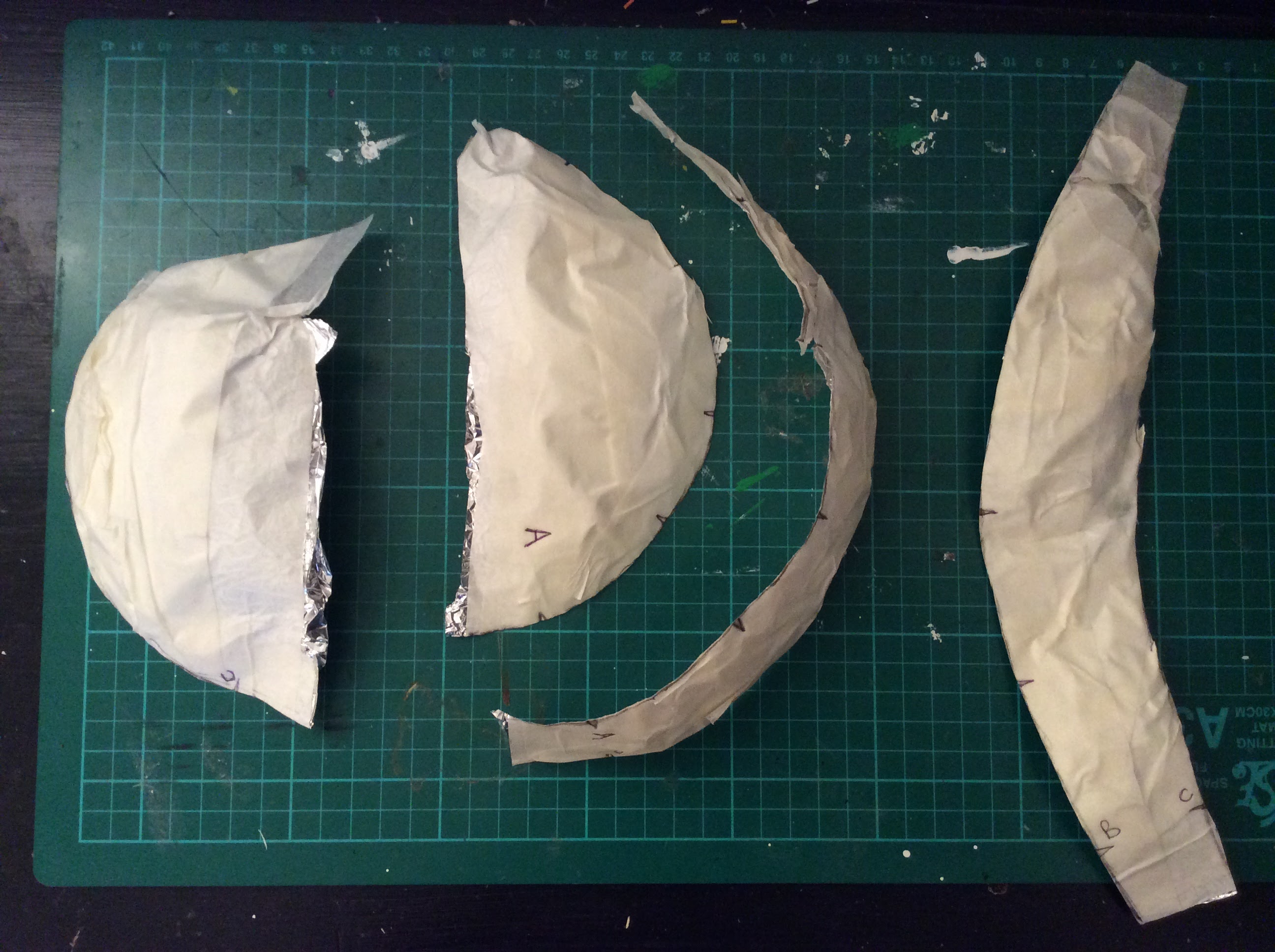 Transfer the shapes onto card or paper by tracing around the edges and cutting them out. Make sure to add an offset otherwise the dome will not fit on your head.