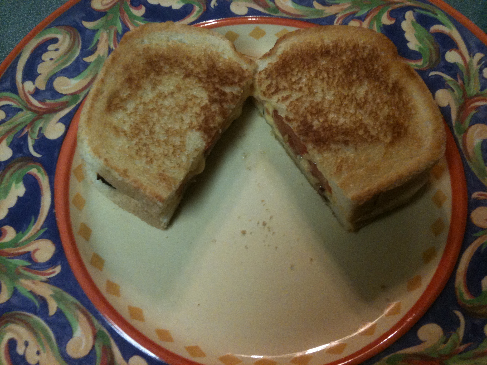 Cook for another minute of two and remove from the skillet. Cut sammich in half on a plate.