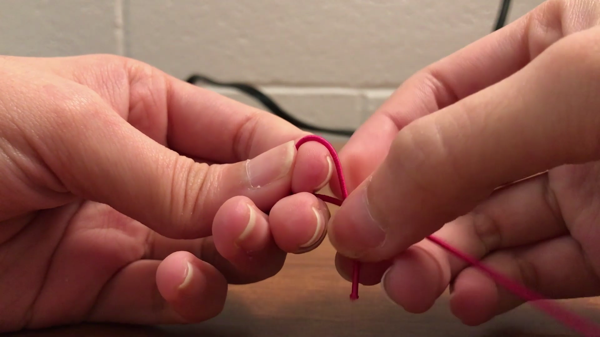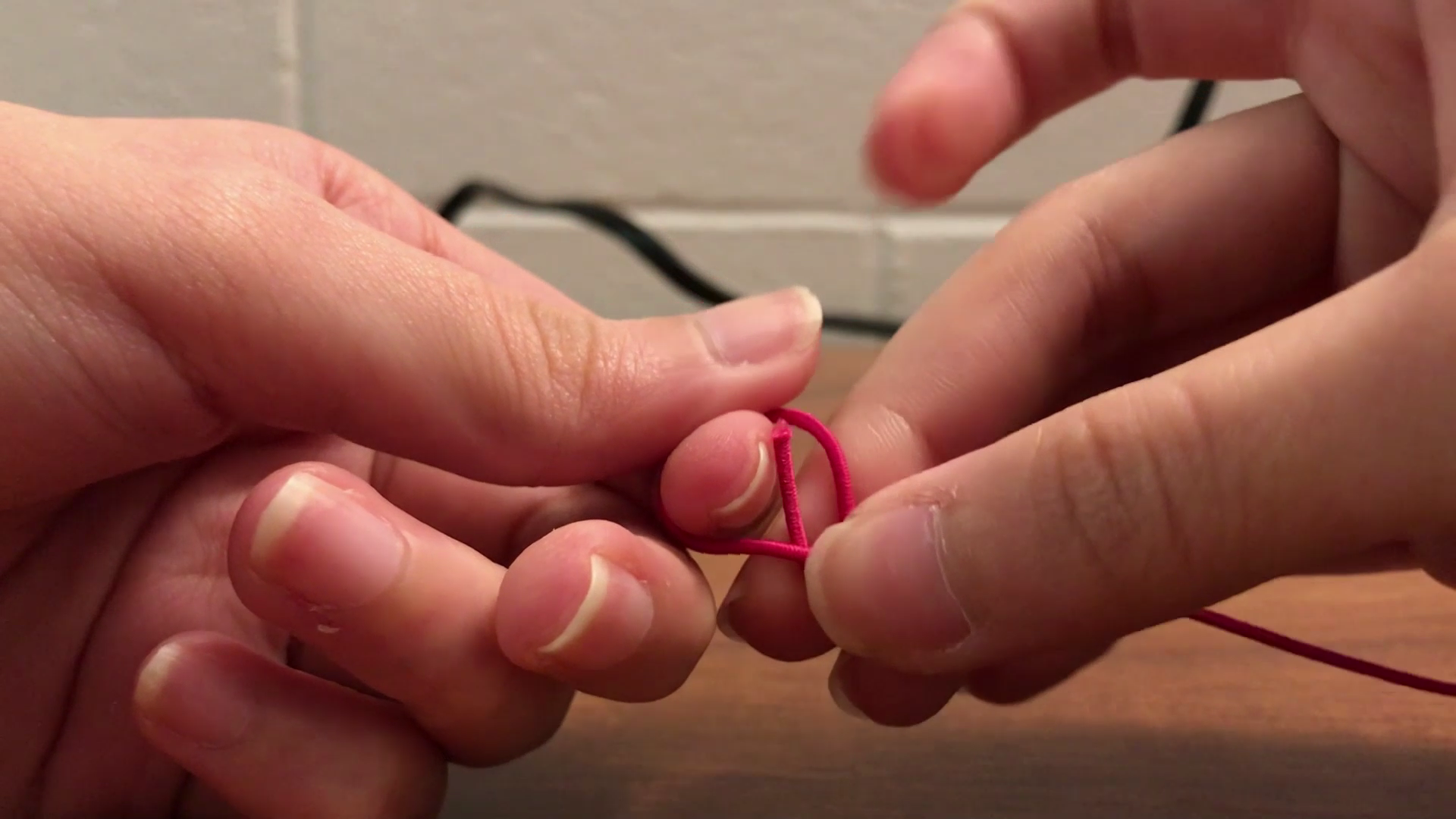 1) Grab the end of the jewelry cord WITHOUT a knot