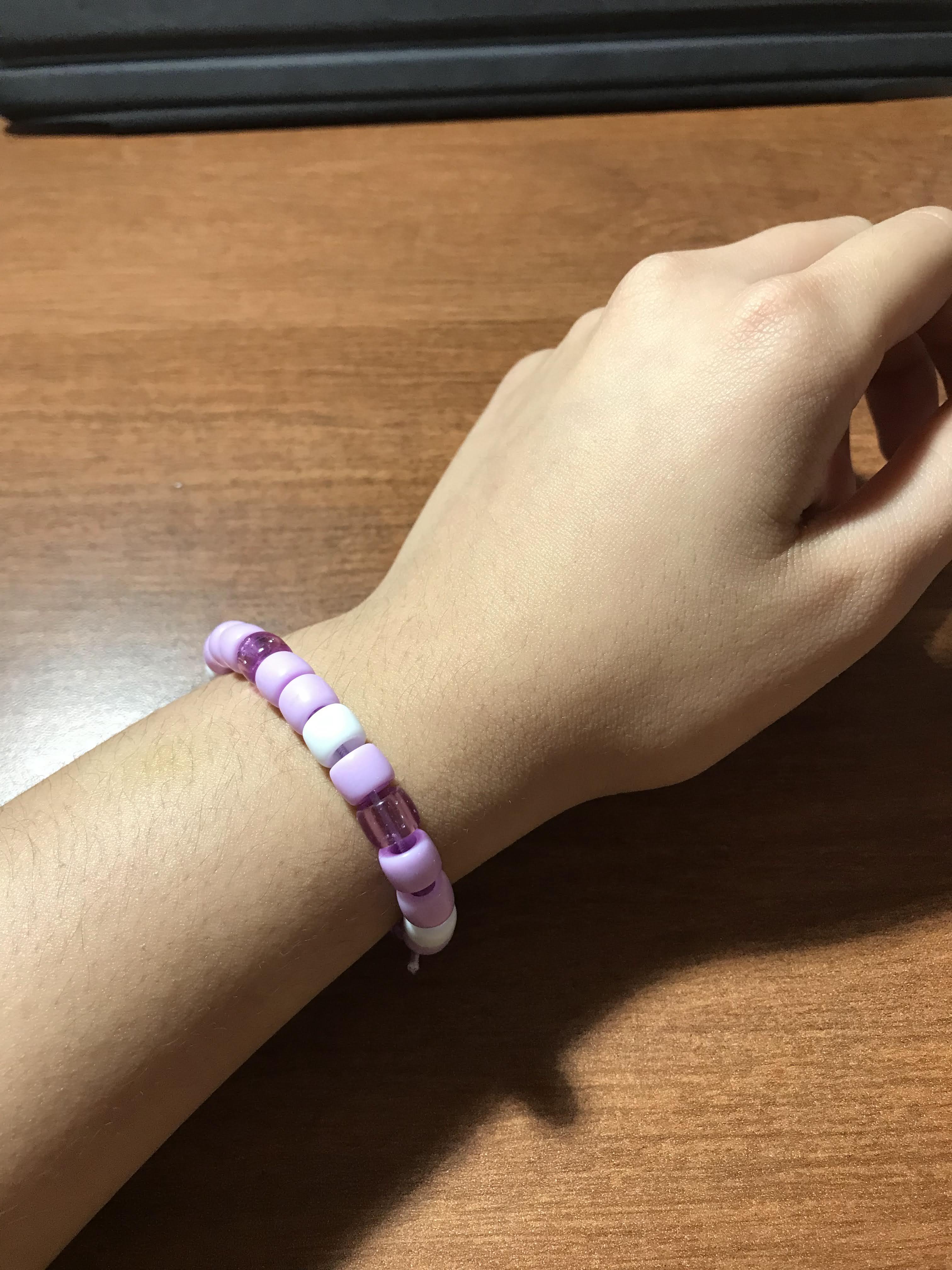 - The amount of transparent purple beads you use will vary depending on how big you want your bracelet/how big your wrist is