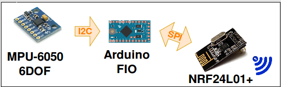 - MPU 6050, 6DOF sensor which communicates with the Arduino over I2C