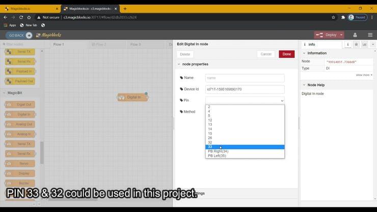 1. Drag & Drop the Digital In block from the Magicbit-nodes section to the flow.