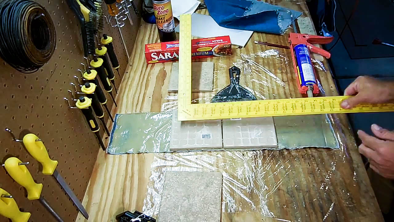 But in front of everything I'm going to be wrapping it all in denim, and impregnating that with the construction adhesive. And what that's supposed to do is it's going to be capturing any spall that might come off of the tiles when the bullet impacts. So, anyways, I'm going to go ahead and show you that next.