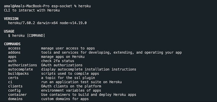 Make sure that git and Heroku is successfully installed on your machine by typing the command heroku in the terminal.