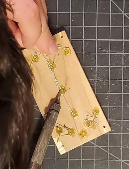 Now that we've mounted a few extra things to the turn indicator, you can finish off the last 3 or so resistors, following the same method (gluing down the components, keeping wire lengths minimal).
