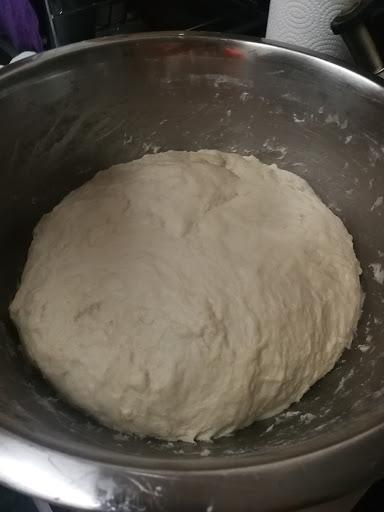 Sprinkle the dough with a dusting of flour and cover it with a cheesecloth. Then place it into the now warm oven and set a timer for 1 1/2 hours or let it rise till doubled in size.