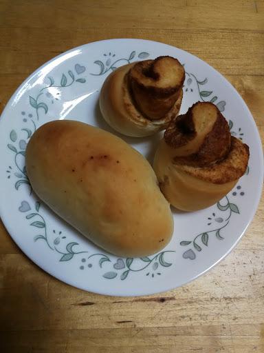 - The last picture has an apple-filled bun and two mini cinnamon rolls