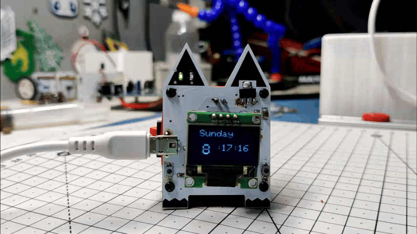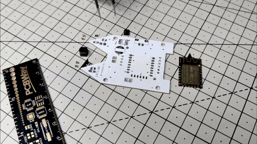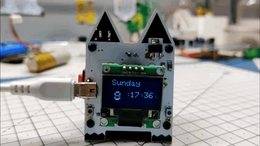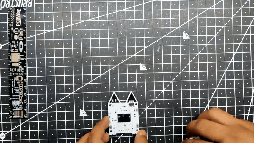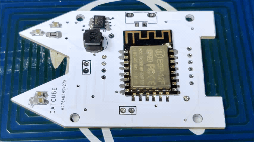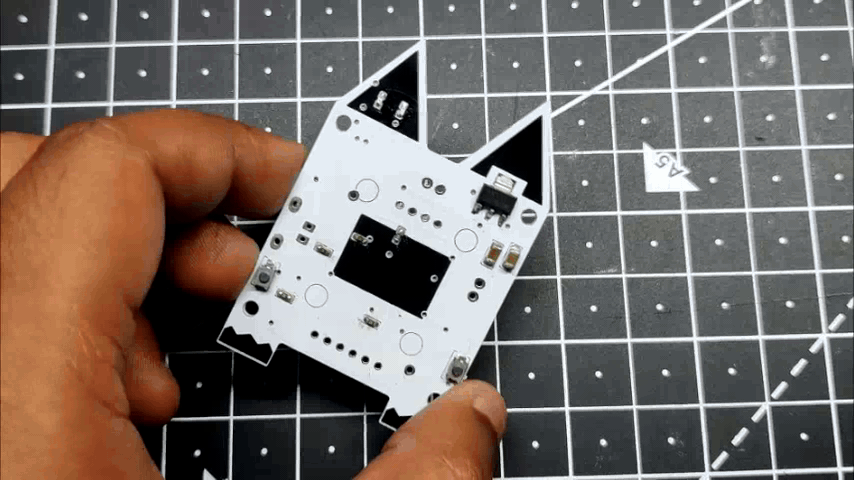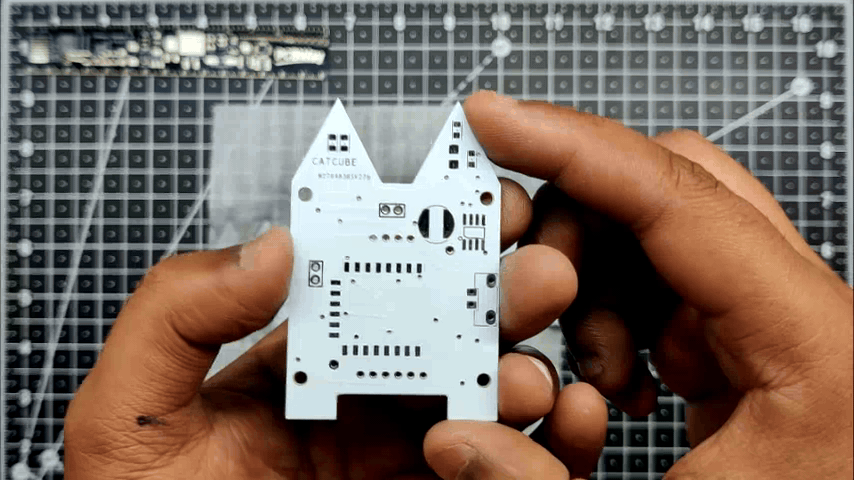 This project was built around a custom PCB that houses all the electronics, including a Li-Po charging IC, an AMS1117 setup that steps down voltage to 3.3V, and an ESP8266 setup. The PCB serves as the top part of the project and even has some unique aesthetic features, like CAT Ears and PAWS, that give this small CUBE its own individuality.