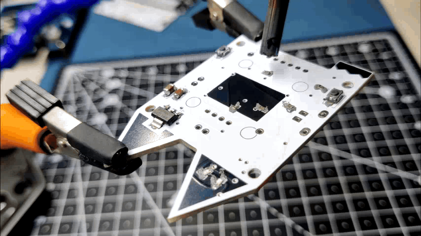 - We couldn't reflow this PCB using an SMT hotplate due to the components on the bottom side. Instead, we will melt the solder paste using a hot air soldering station, which will allow the components to be soldered to their pads.