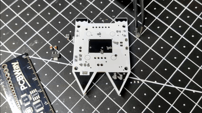 - Next, we add all the SMD components on the bottom side to their locations using an ESD tweezer.