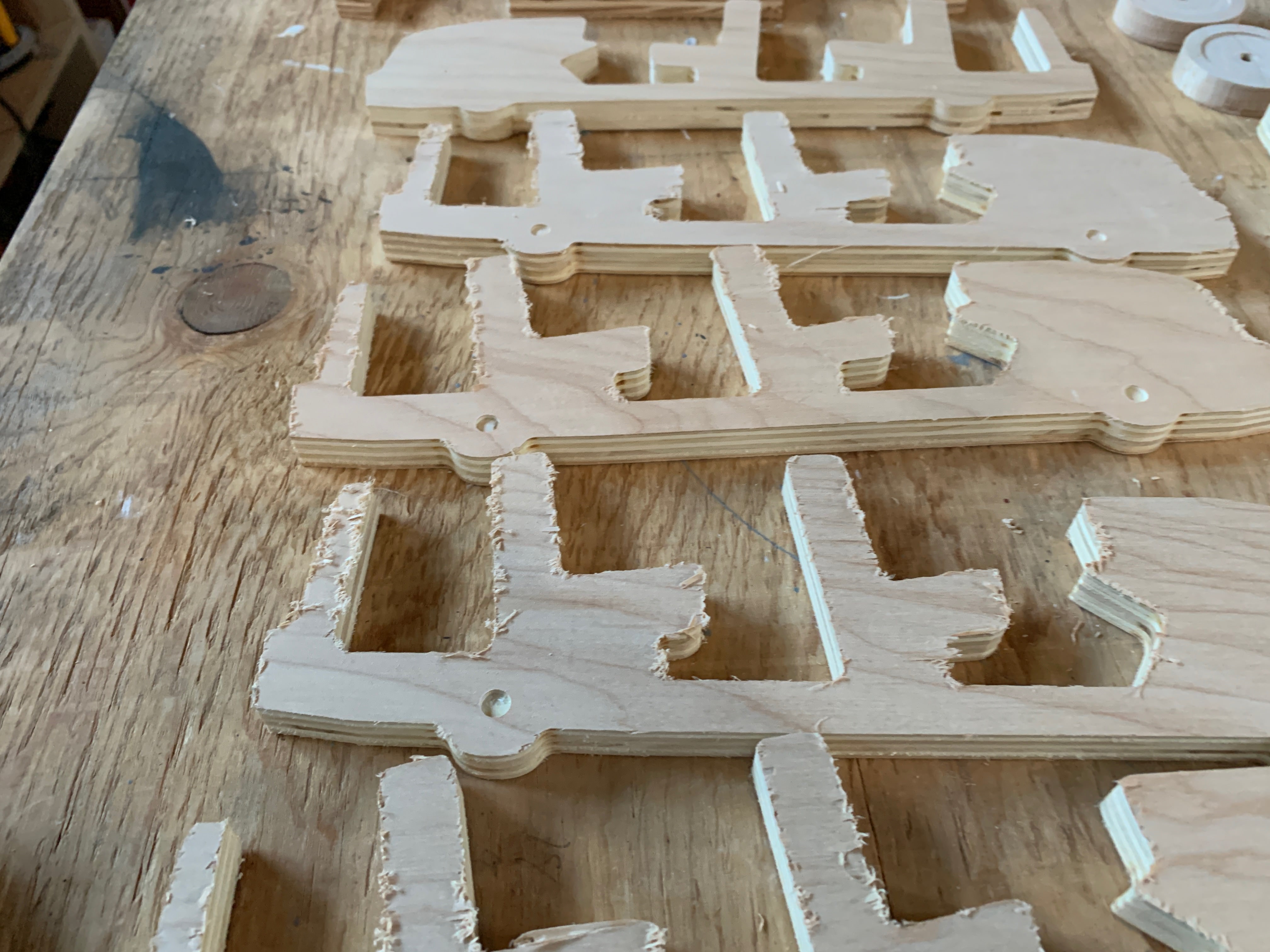 As mentioned above, the parts come out nice and consistent, but they do require some cleanup needed. Here’s all the parts laid out after cutting, and you can see some of the rough edges.