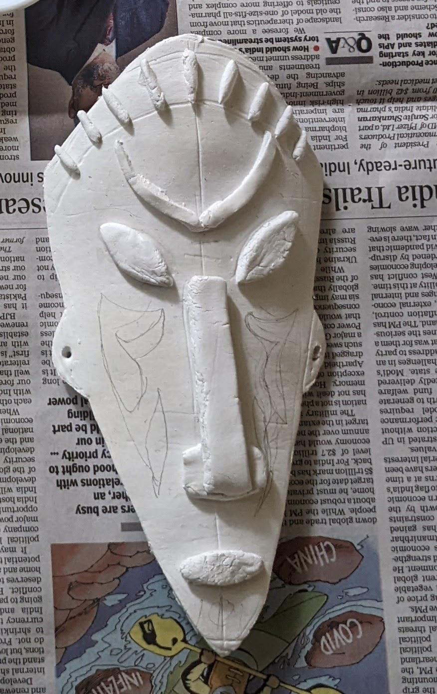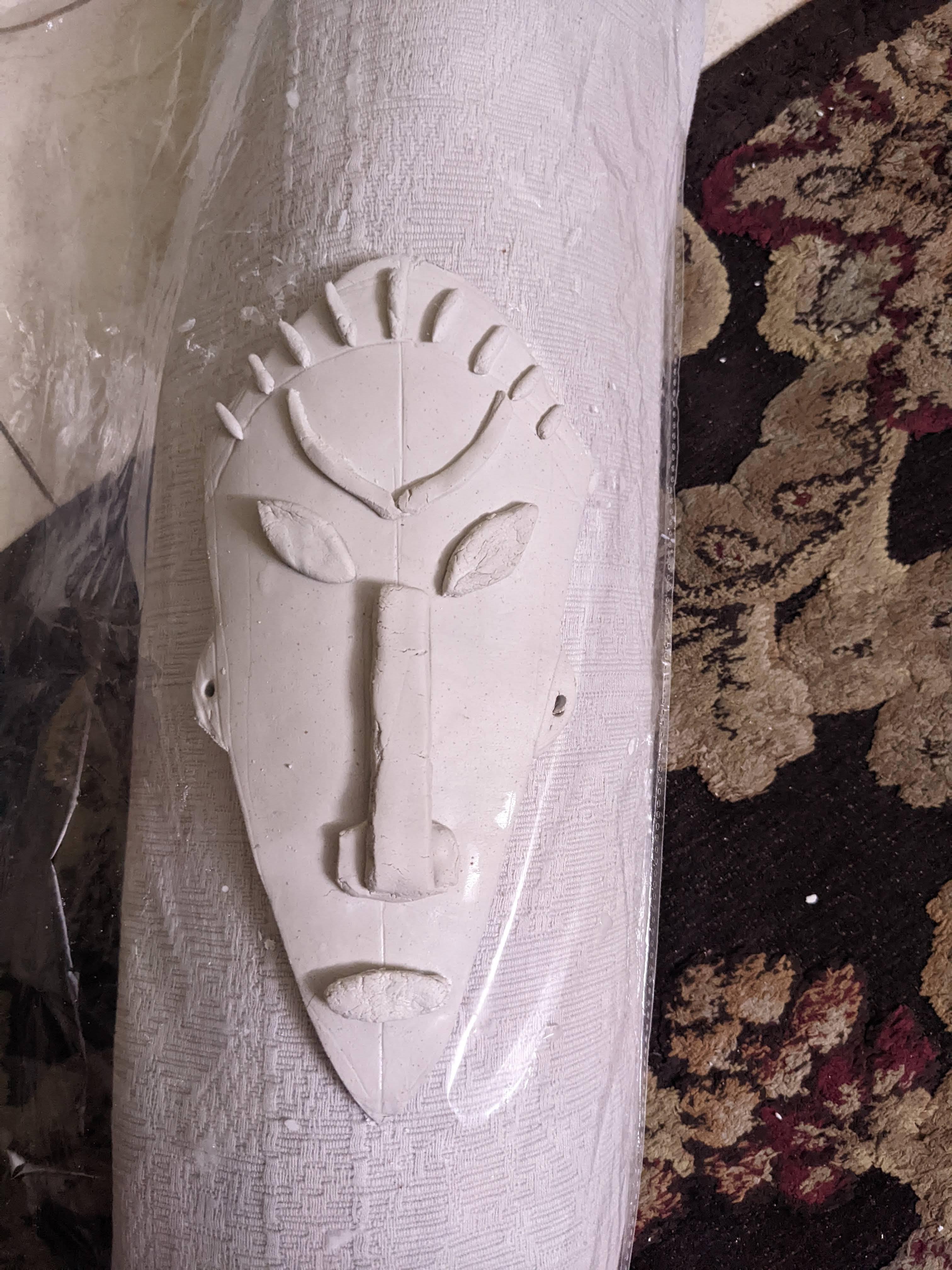 This is a project to create a mantelpiece mask made out of clay, with a tribal themed design.