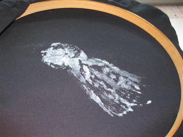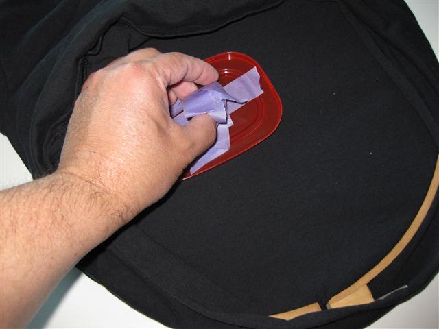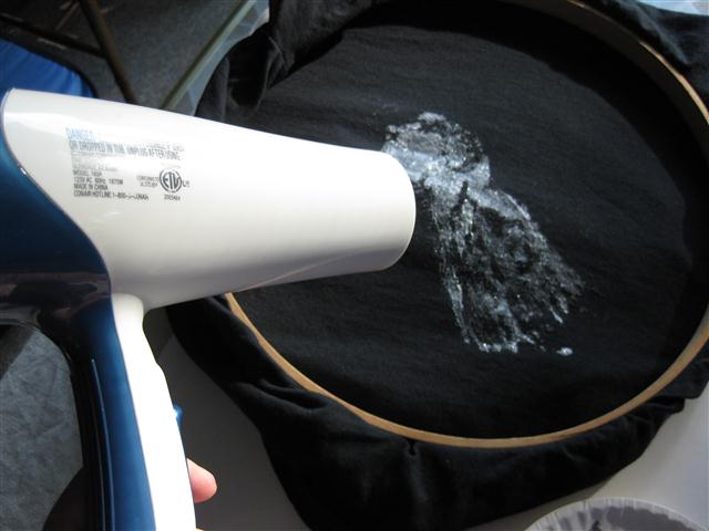 I flipped the hooped t-shirt over the wet image on the poster board; Watching to stay in my marks.