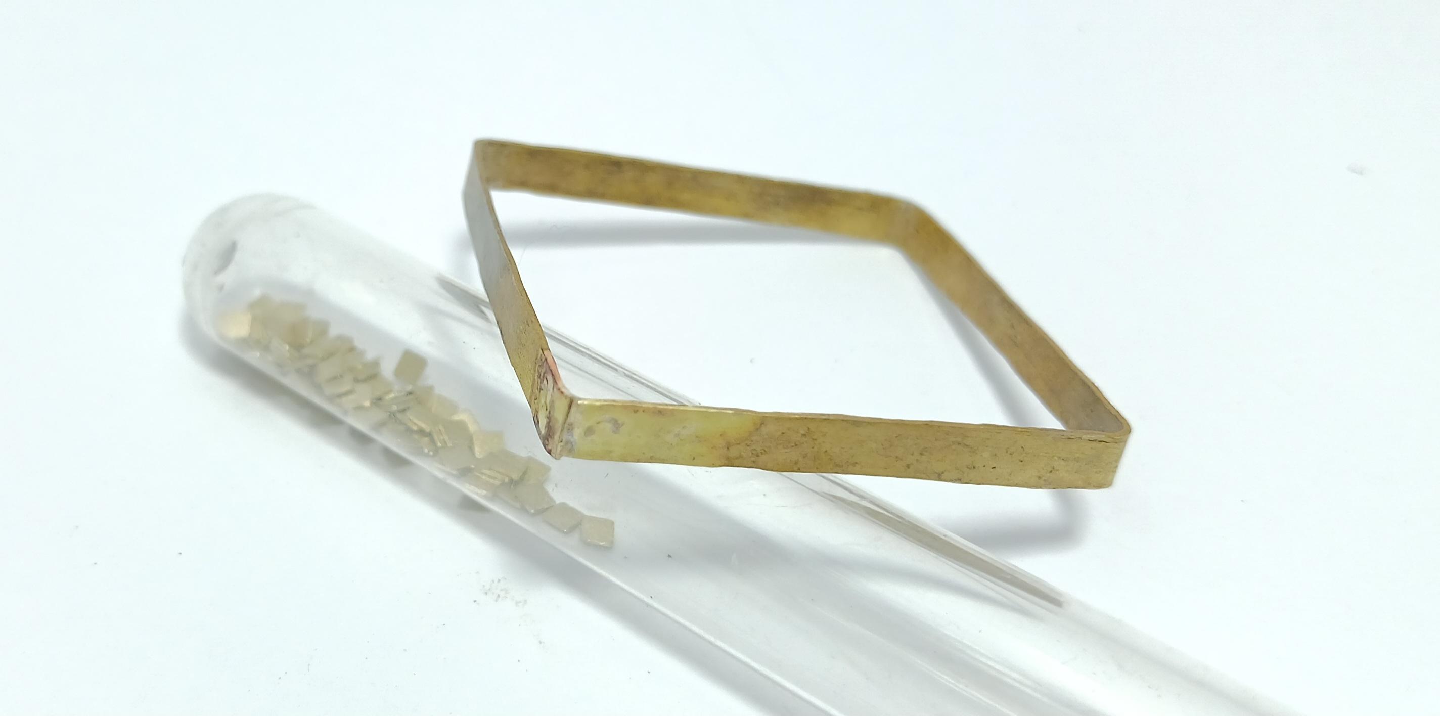 With the frame bent we need to solder the open corner seam using silver solder, I almost exclusively use "easy" silver solder in all of my projects. There are basically three options: Easy – melting range 705 to 725°C, Medium – melting range 720 to 765°C and Hard – melting range 745 to 780°C.