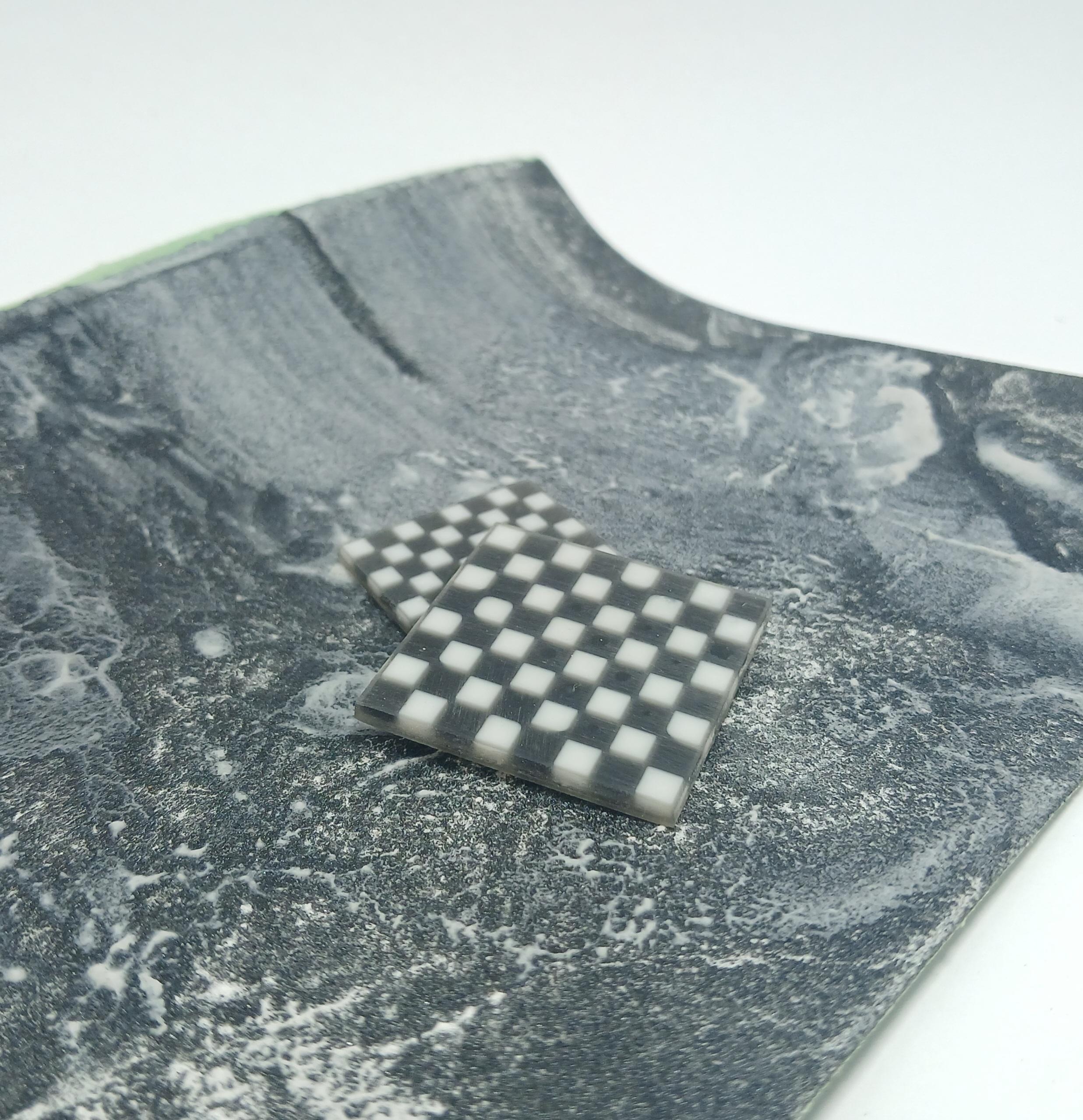 After curing the resin with a UV light or just placed in the sun I use some 220 grit sanding paper wetted with soapy water and placed on a glass pane to ensure a level surface and sanded the chequered board down about 0.5mm until I was left with a clear even board.