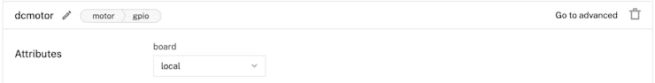 After creating your motor component, fill in the required attributes for a gpio motor: