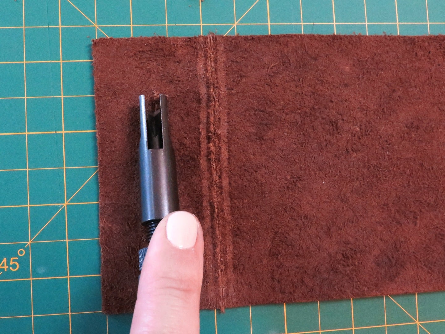If you find it hard to maintain an even angle, you can try drawing a guide line on your leather where you want the bevel of your skive to start, and then follow this line as you pull the skiver toward you.