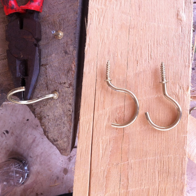 I bent the regular 'S' hooks by screwing them into a plank and gently tapping and bending them into the shape of a tail. Have plenty to spare as you most probably will break some!
