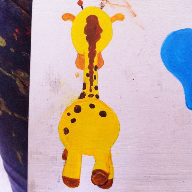Now give the giraffe details by painting its hair a mix of orange and brown. Give the body some brown spots. For the mouth and ear, use an orange paint.