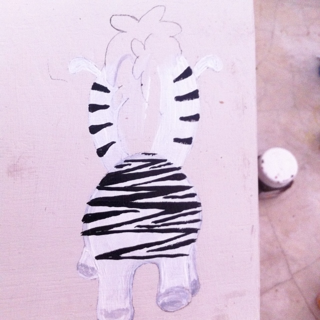 Paint the zebra's hair and give the zebra its zig zag black stripes. I never thought of it then, but I think if I had used a ruler and marker pen, it would have been easier!