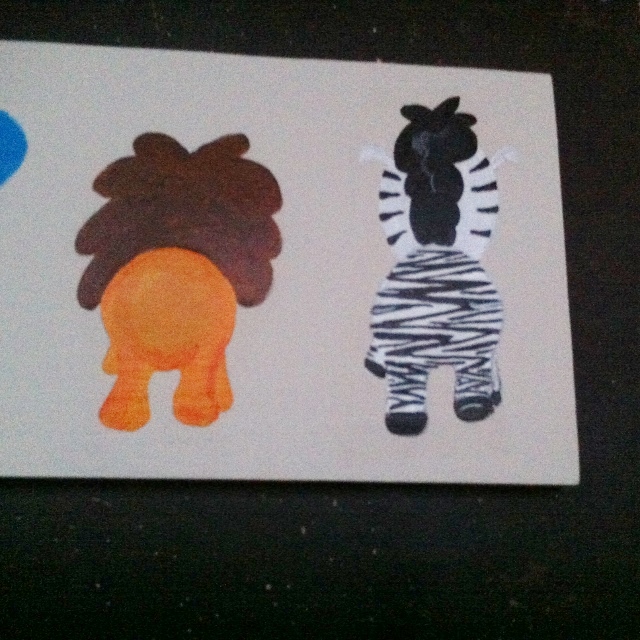 While you are painting the animals keep the hooks close by. Paint each tail the relevant animal color.