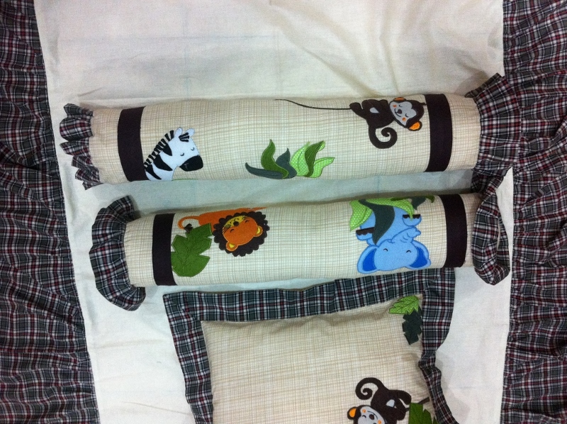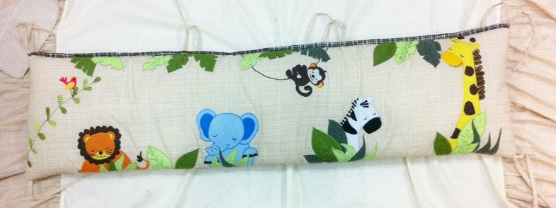 Here is a peek into the bedding. Now you know why I painted my elephant blue! :-)