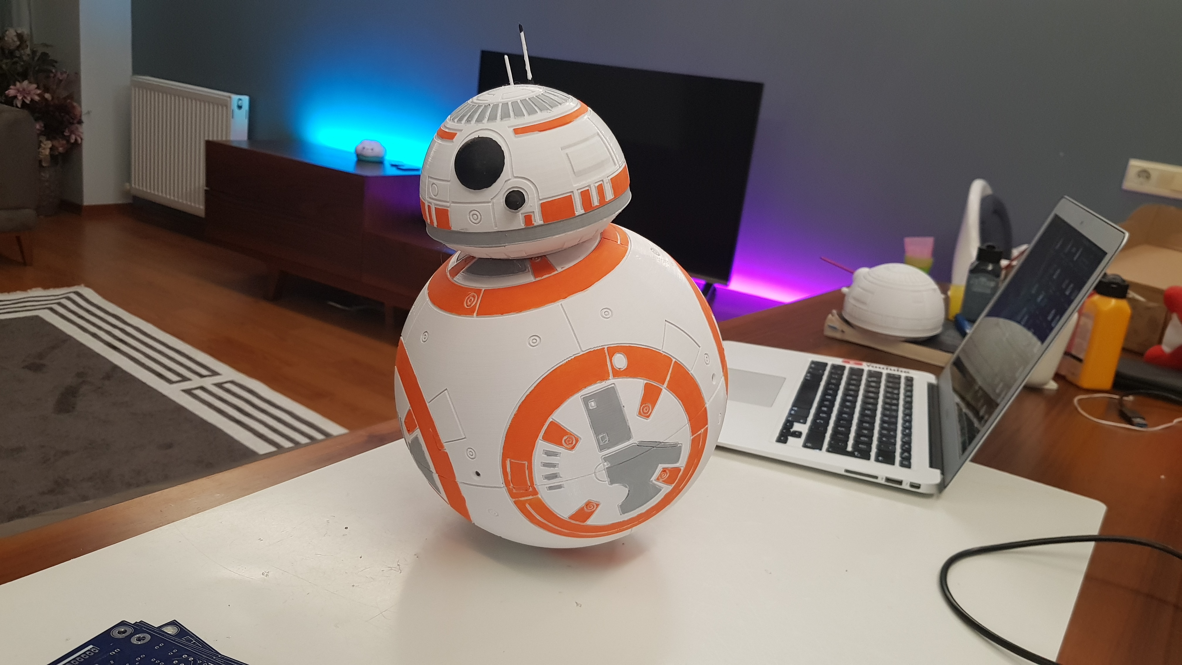 Hi everyone, this is my first project so I wanted to share my favorite project. In this project, we will make BB8 which is produced with a 20 cm diameter completely 3D printer. I'm going to build a robot that moves exactly the same as the real BB8. We will be able to control via bluetooth with smartphone. This robot will be the first experiment in real-life BB8 with artificial intelligence that I want to do later.