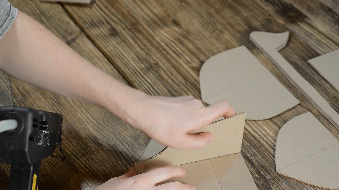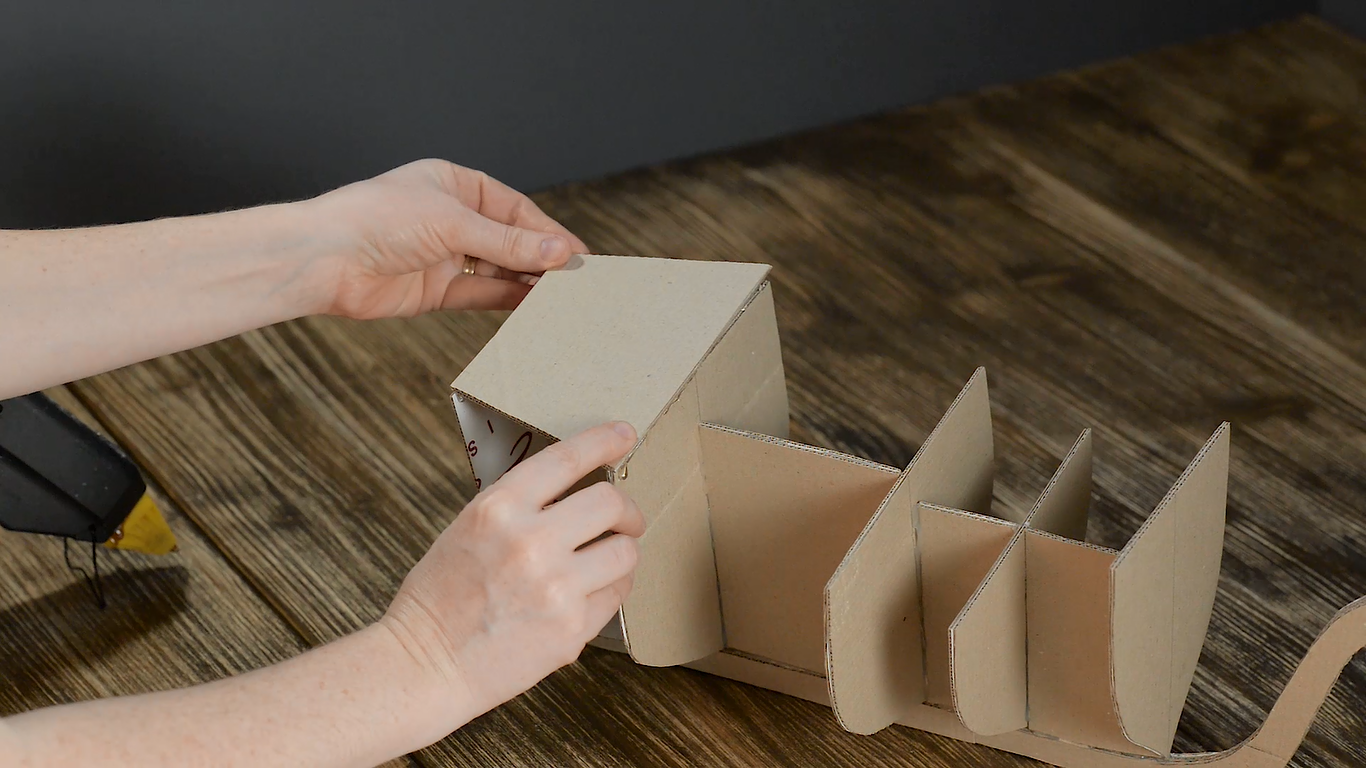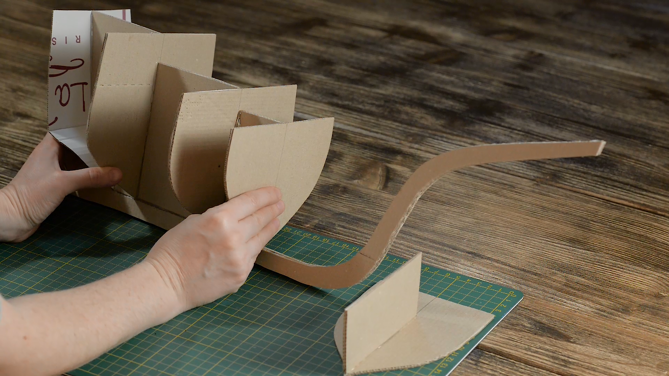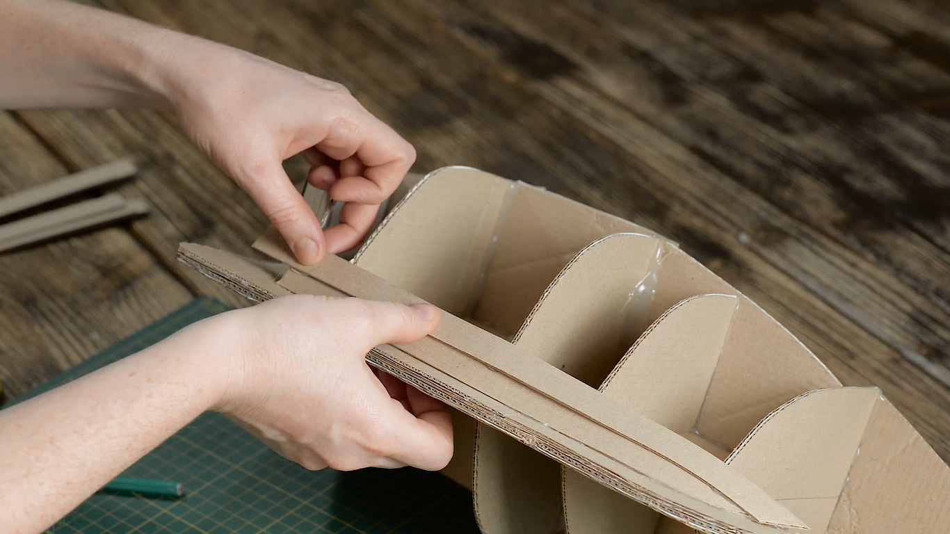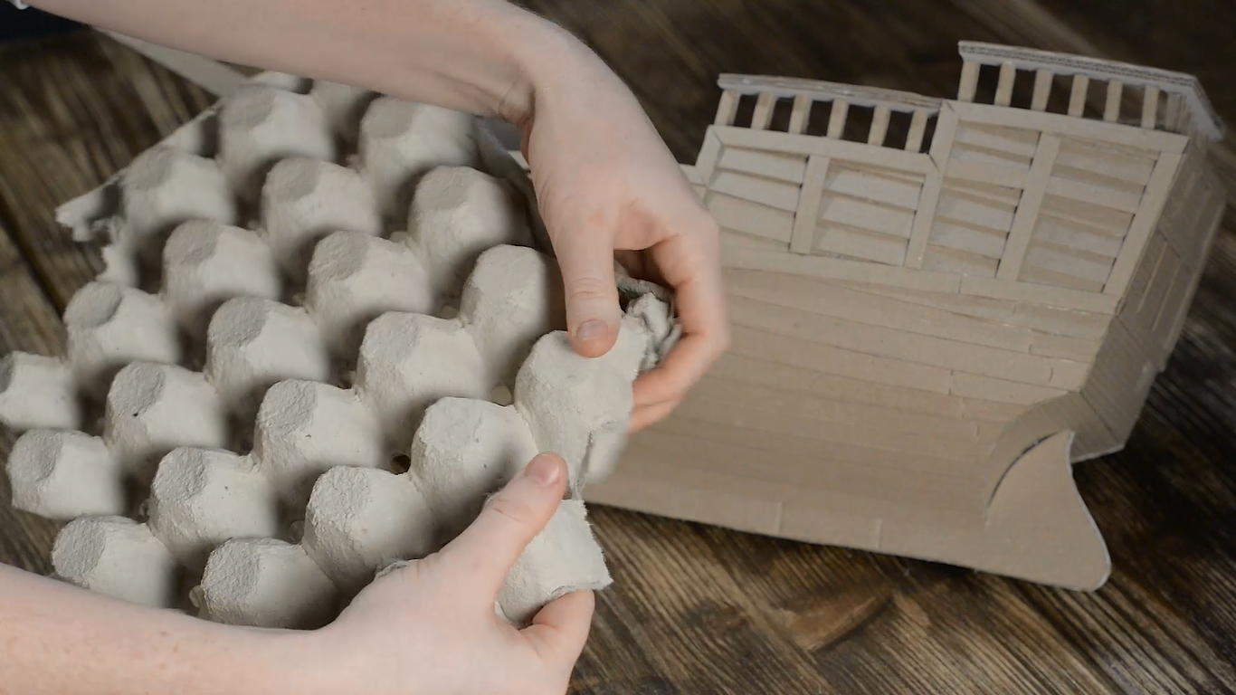 For this project I used cardboard from pizza boxes, egg cartons, hot glue, thread, super glue and paint.