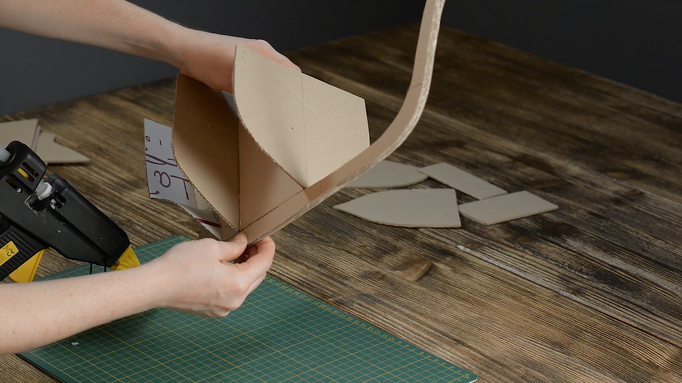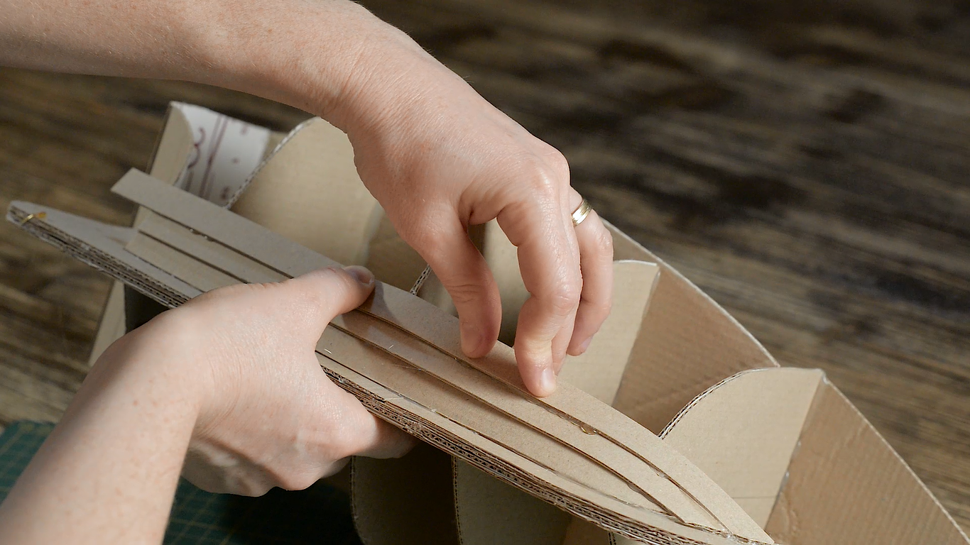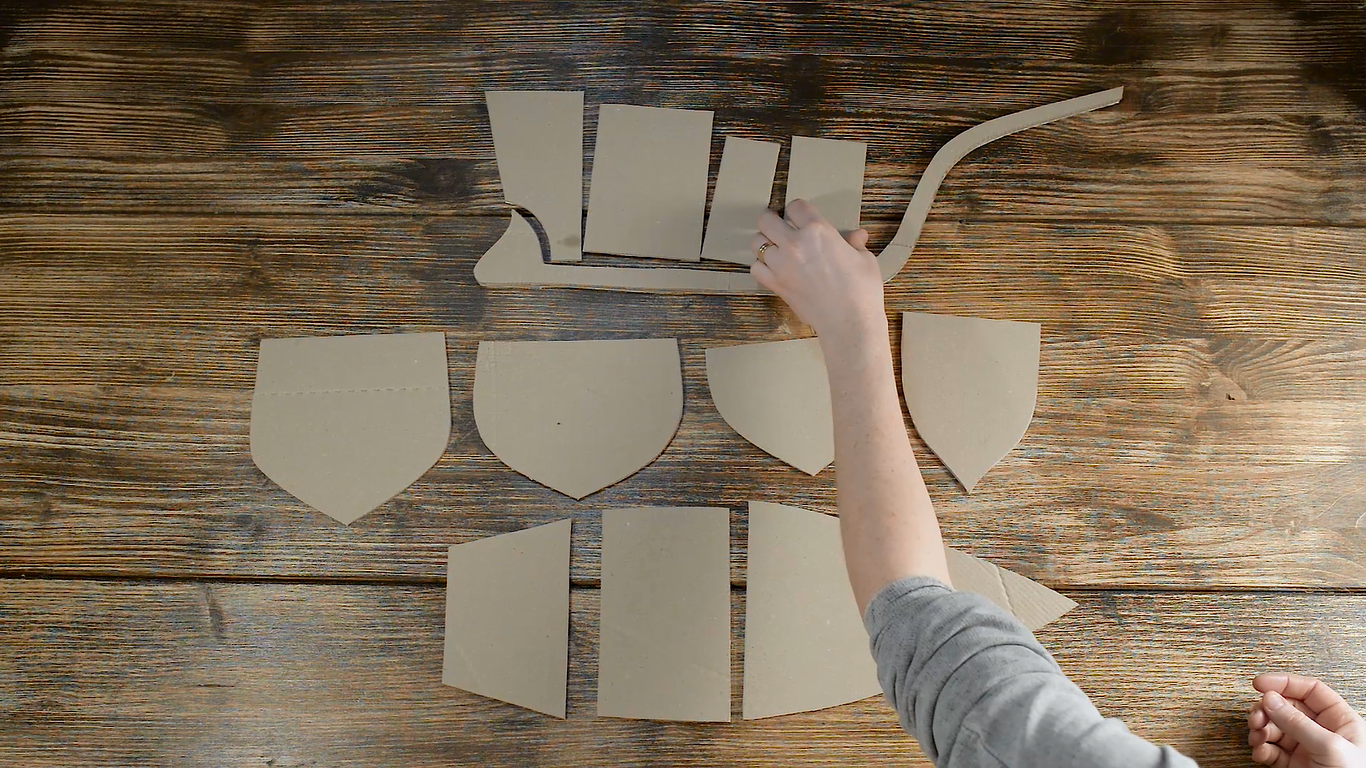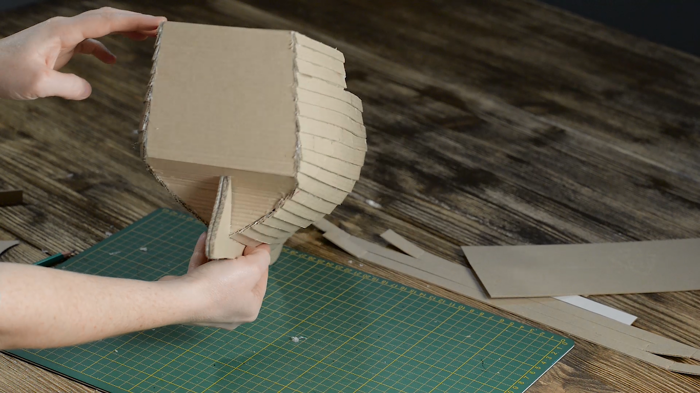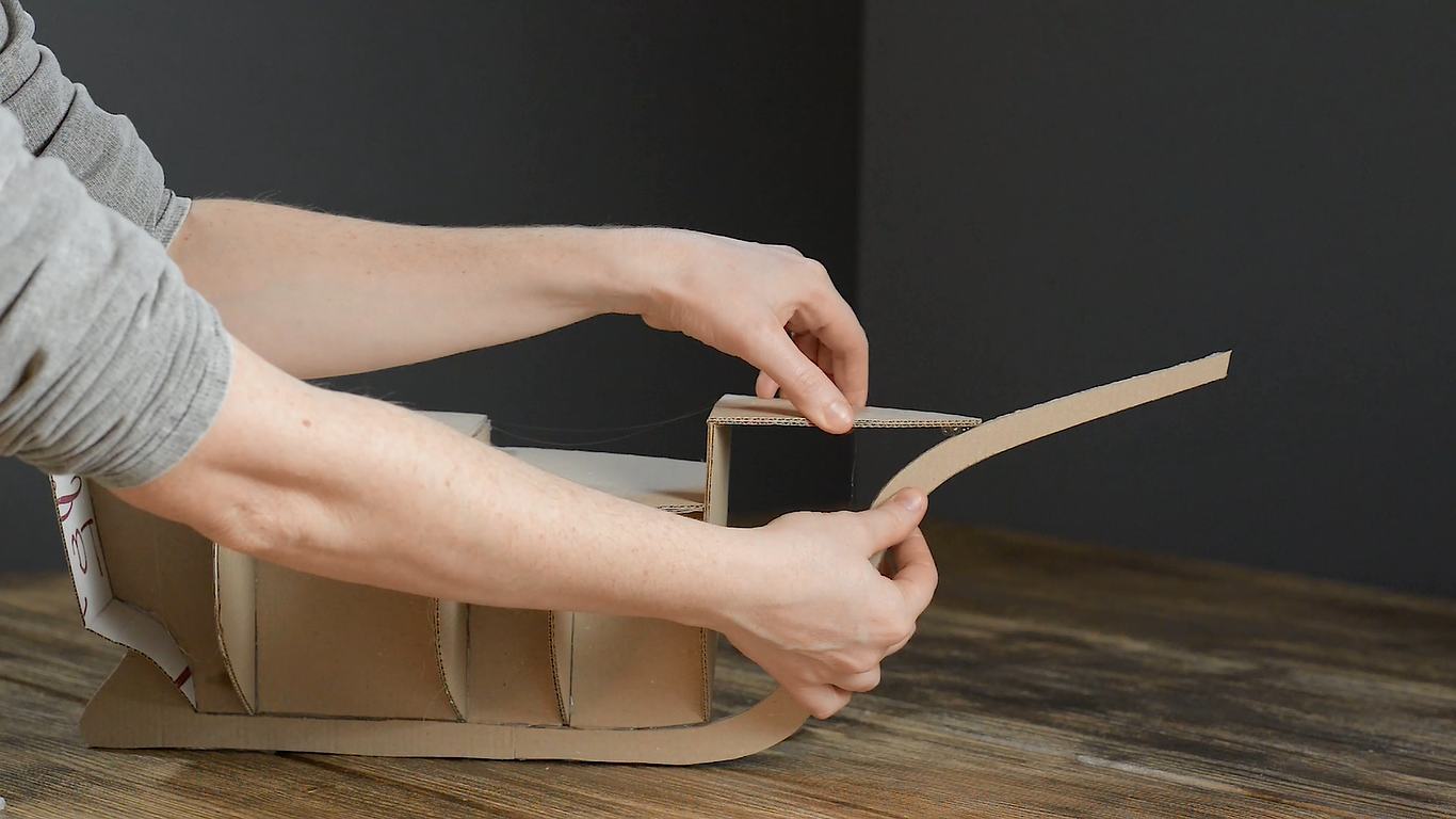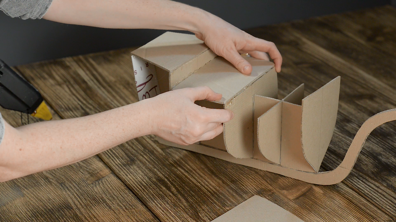For this project I used cardboard from pizza boxes, egg cartons, hot glue, thread, super glue and paint.