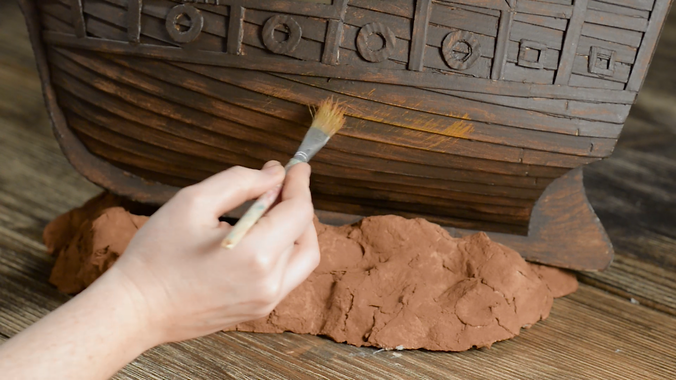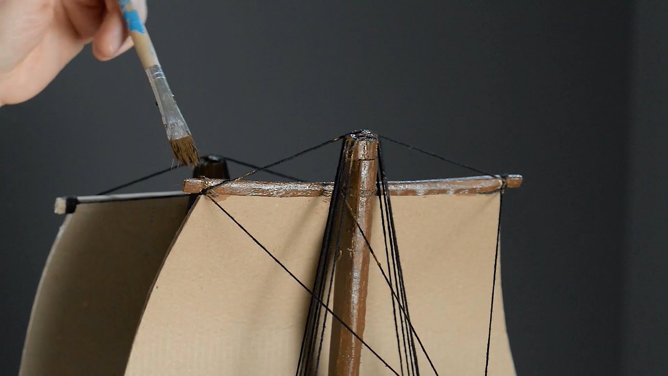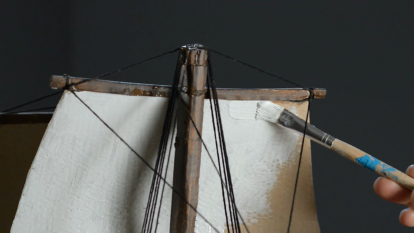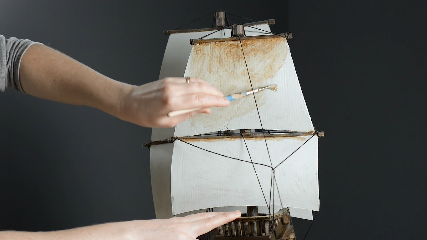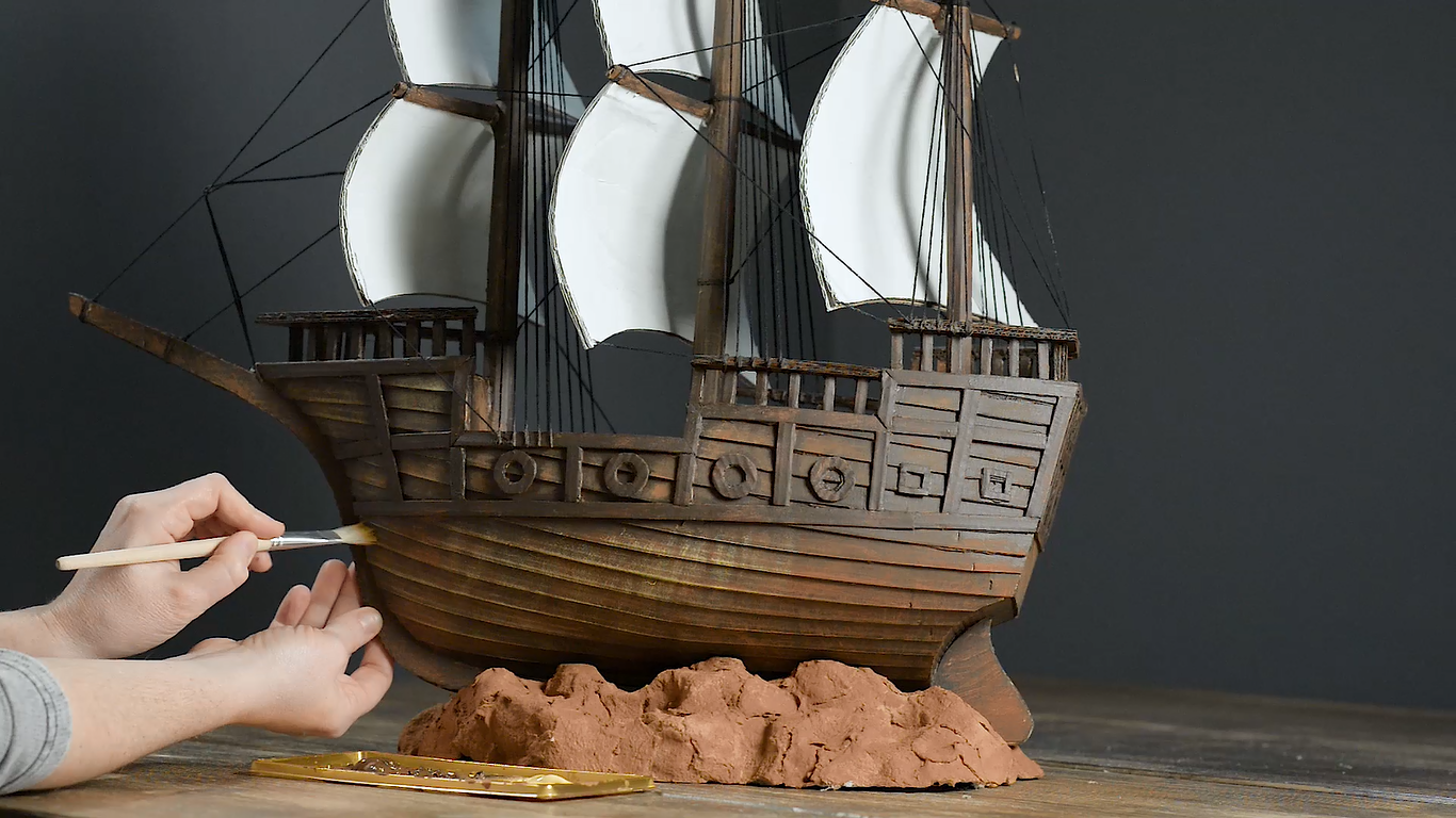 I covered the surface in a dark color first. This will serve as a base. Make it go in all the cracks and the deepest holes. It will act like a shadow and contrast layer when we add brighter colors. I add a brighter color only to the surface of the texture, gently rubbing the brush with very little pigment so I don't get it in the cracks. On top of that bright color you can add other colors as well. You can make it brighter and more colorful, it's your choice. I went for a wooden look for the main body of the ship. I painted the sails white first and then added a diluted brown to the top and spread it gently and dissolving it to the bottom until the sail looked older and used. I hope you liked my instructable and got some inspiration to start your own projects. Have fun!