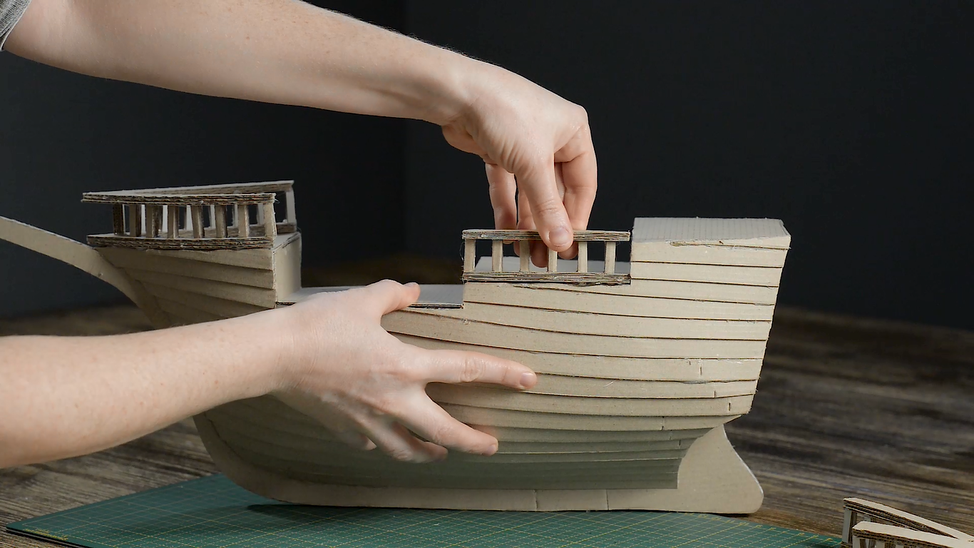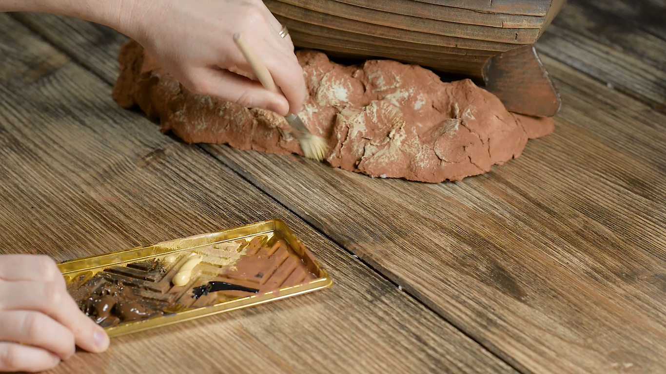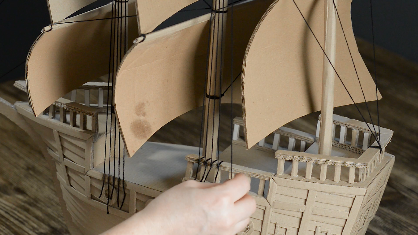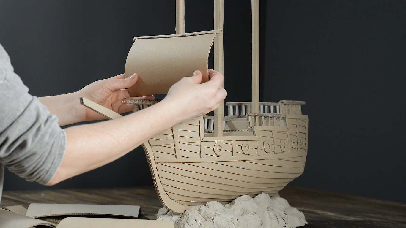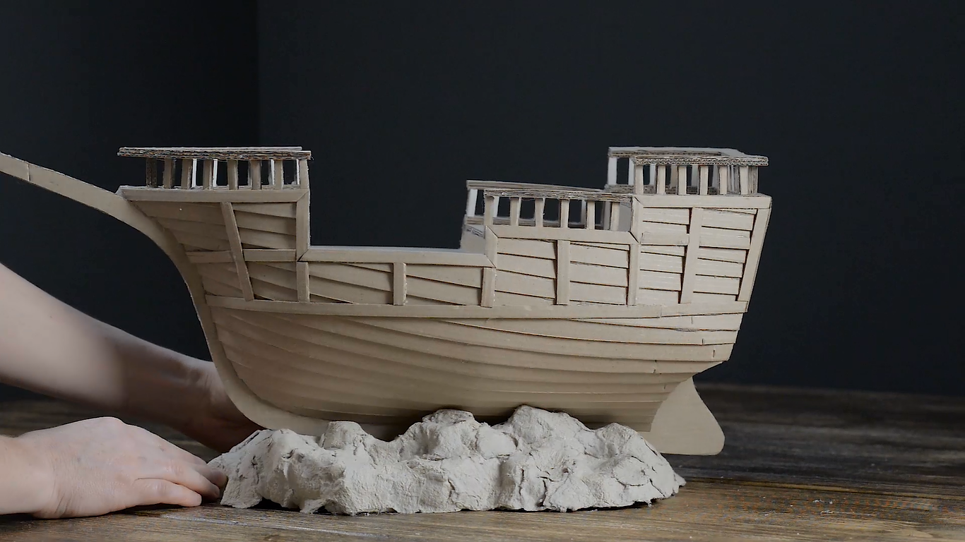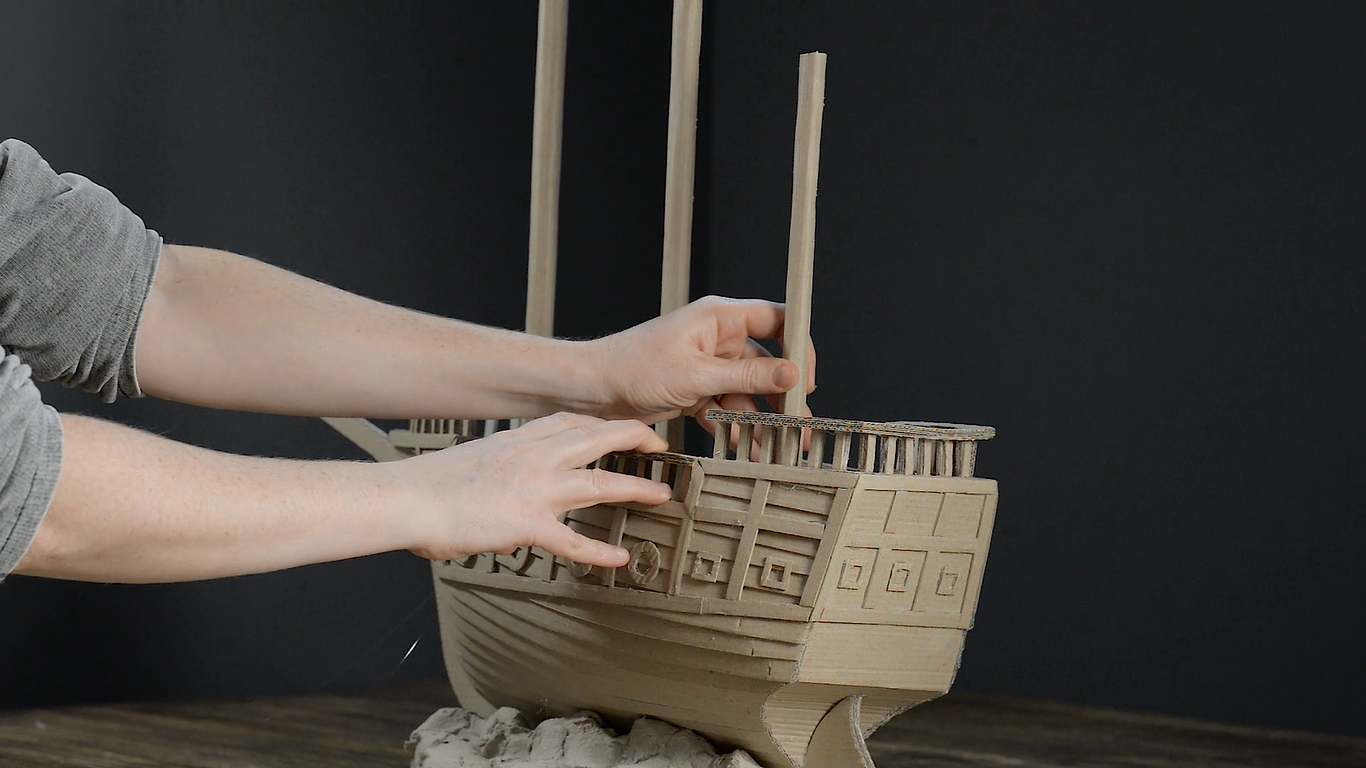 I covered the surface in a dark color first. This will serve as a base. Make it go in all the cracks and the deepest holes. It will act like a shadow and contrast layer when we add brighter colors. I add a brighter color only to the surface of the texture, gently rubbing the brush with very little pigment so I don't get it in the cracks. On top of that bright color you can add other colors as well. You can make it brighter and more colorful, it's your choice. I went for a wooden look for the main body of the ship. I painted the sails white first and then added a diluted brown to the top and spread it gently and dissolving it to the bottom until the sail looked older and used. I hope you liked my instructable and got some inspiration to start your own projects. Have fun!