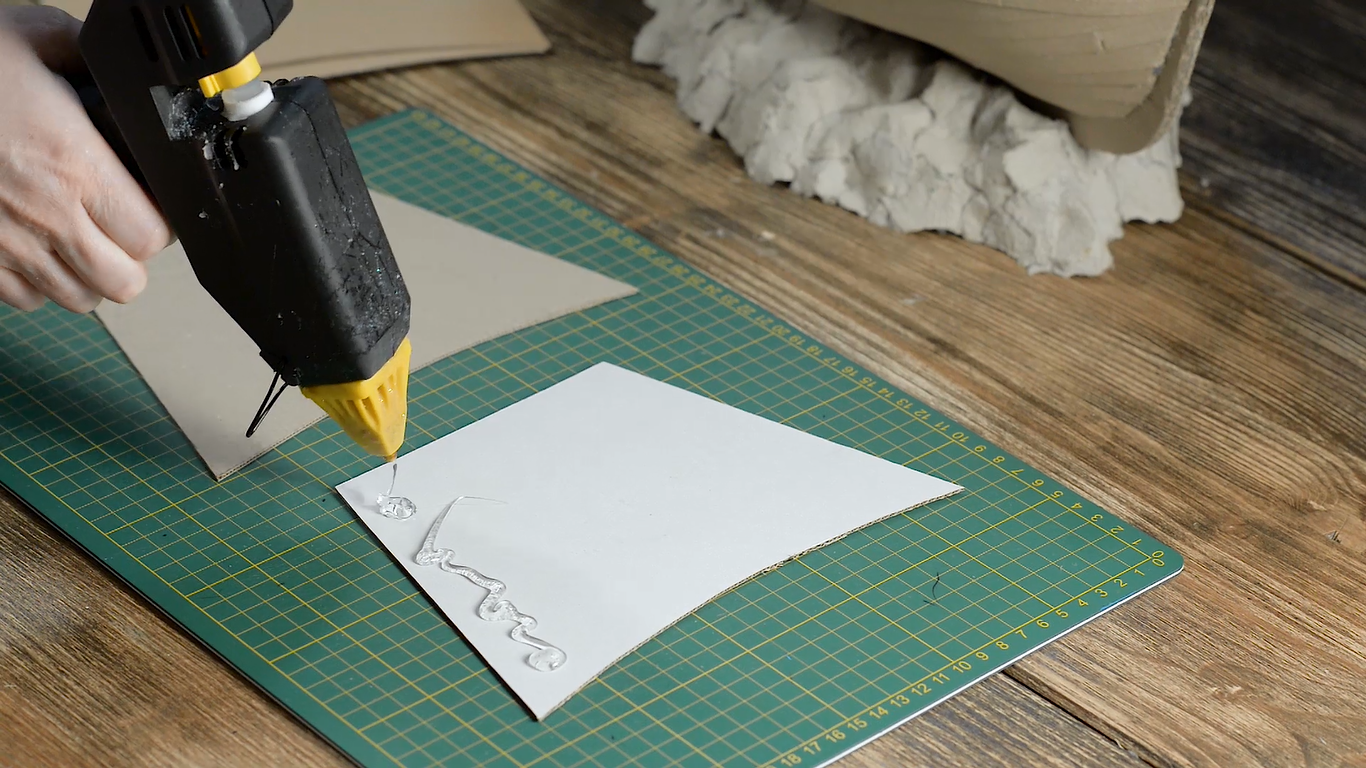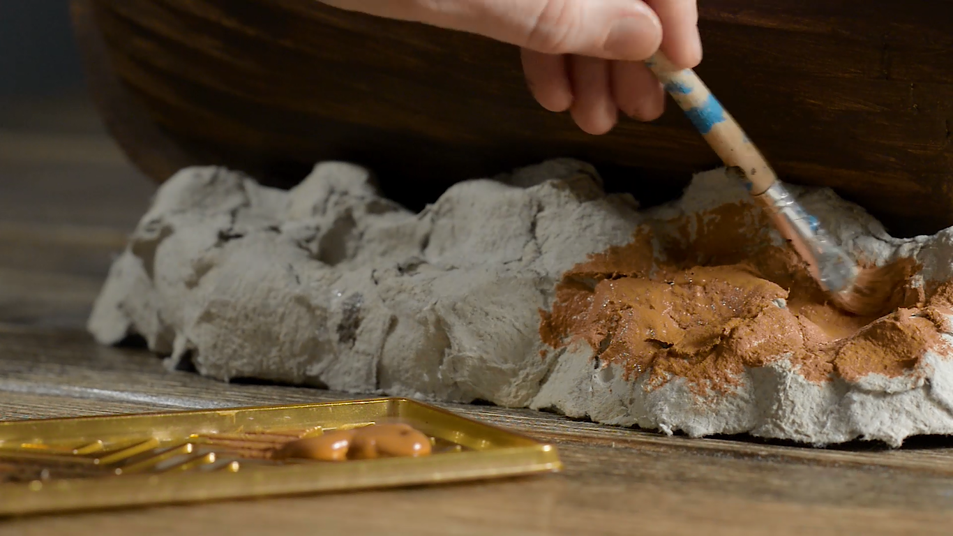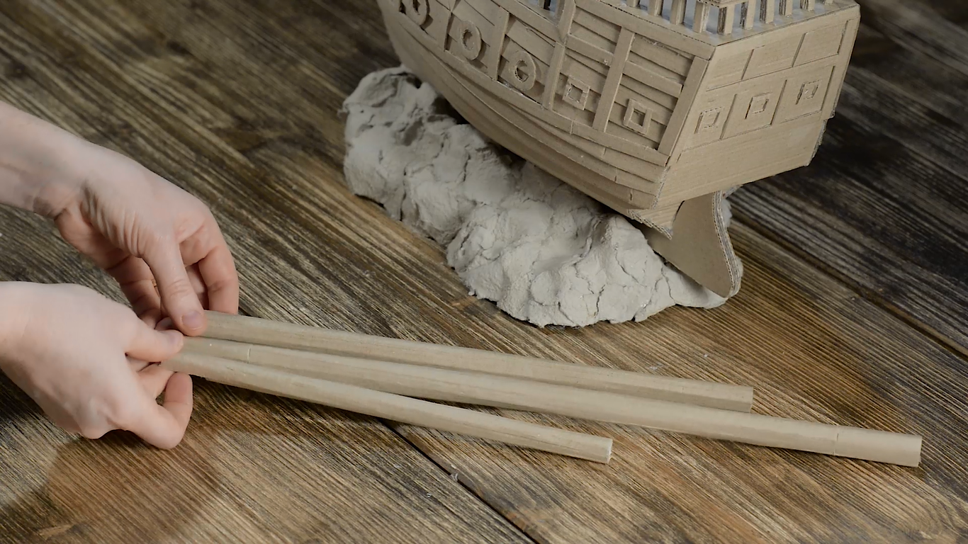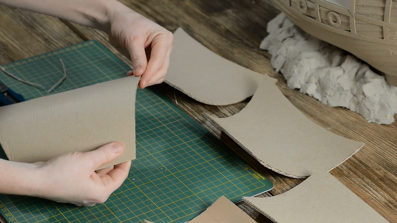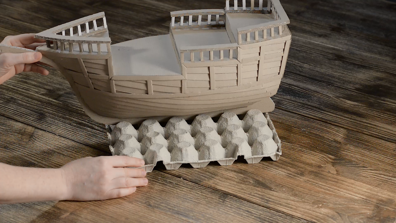 I needed a stand for the ship so I decided to go for a rocky one, full of textures. I made the stand out of egg cartons. I broke the carton into smaller irregular pieces and glued them together. This type of carton is easy to bend and glue in any shape you want.