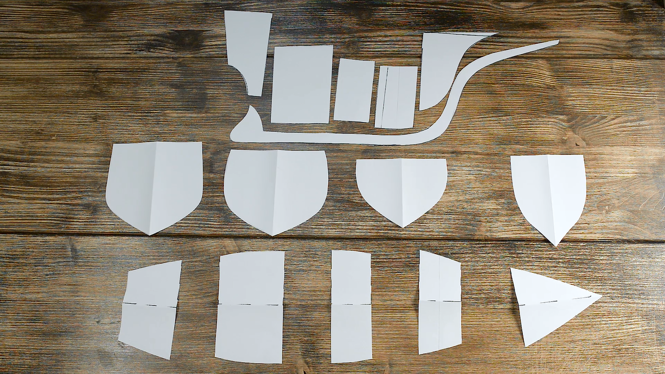I started by designing the patterns. I had some idea of what I want to create so I drew the profile of the ship, then the top view of the deck. The ribs of the ship were a little bit of a guessing game, knowing only two dimensions from the side view and the top view. You can see the result translated in 10 images containing the patterns I will be using in the following steps. All 10 pages are in A4 format (297x210 mm) so try to use them without changing the aspect ratio. My cardboard was 2 mm thick and used two pieces for each pattern, so the thickness you see there is 4 mm (except for the orange one which is the main line of the boat and made it in 4 layers, 8 mm thick). You may have to adjust some of the patterns if you use a thicker or thinner cardboard.