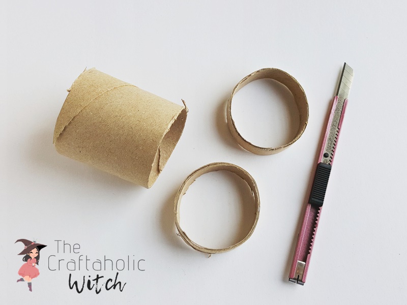 Take an empty tissue paper roll and mark the determined height on it. Use an x-acto knife to cut it the tissue paper roll along the marked area.